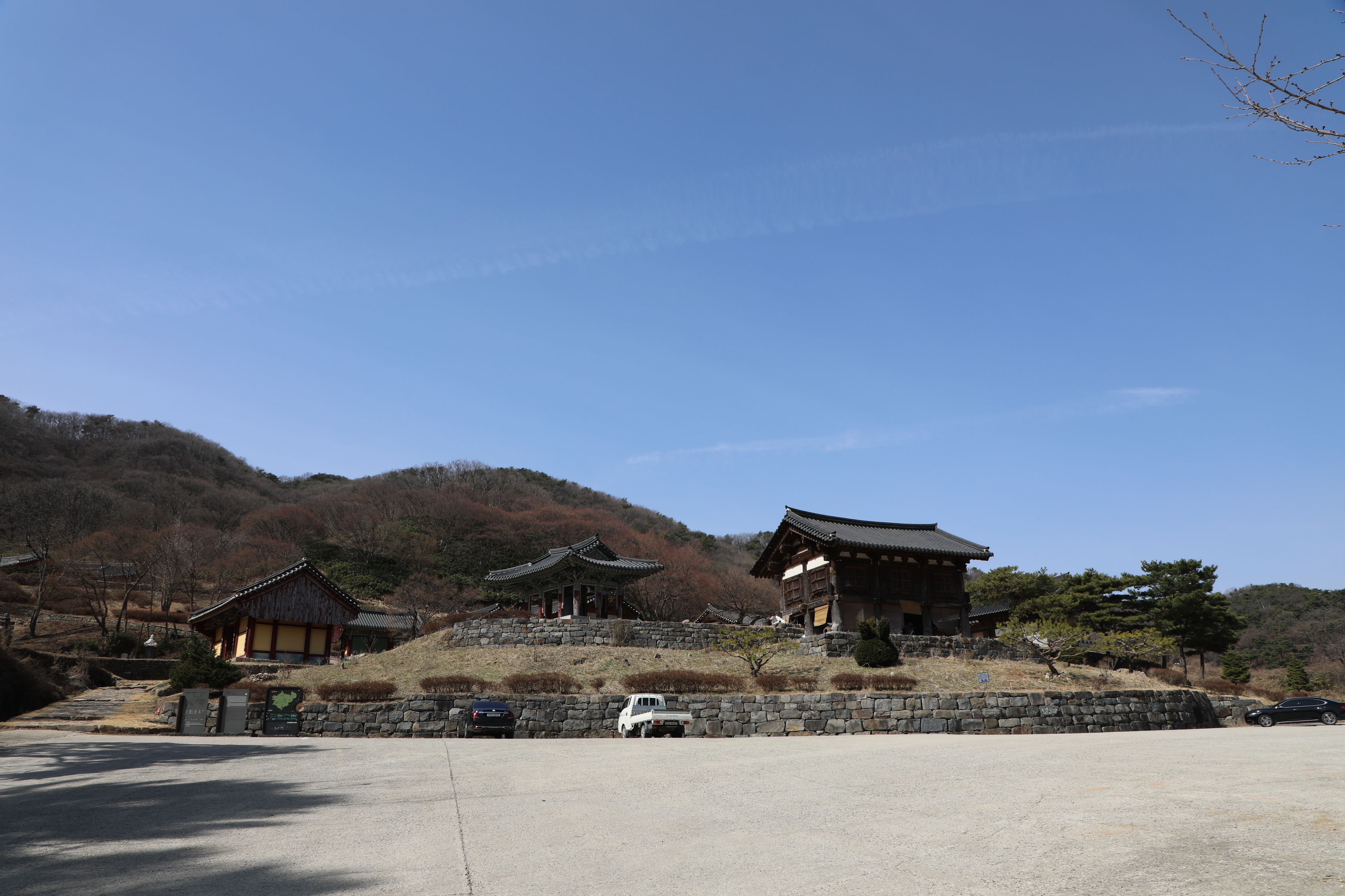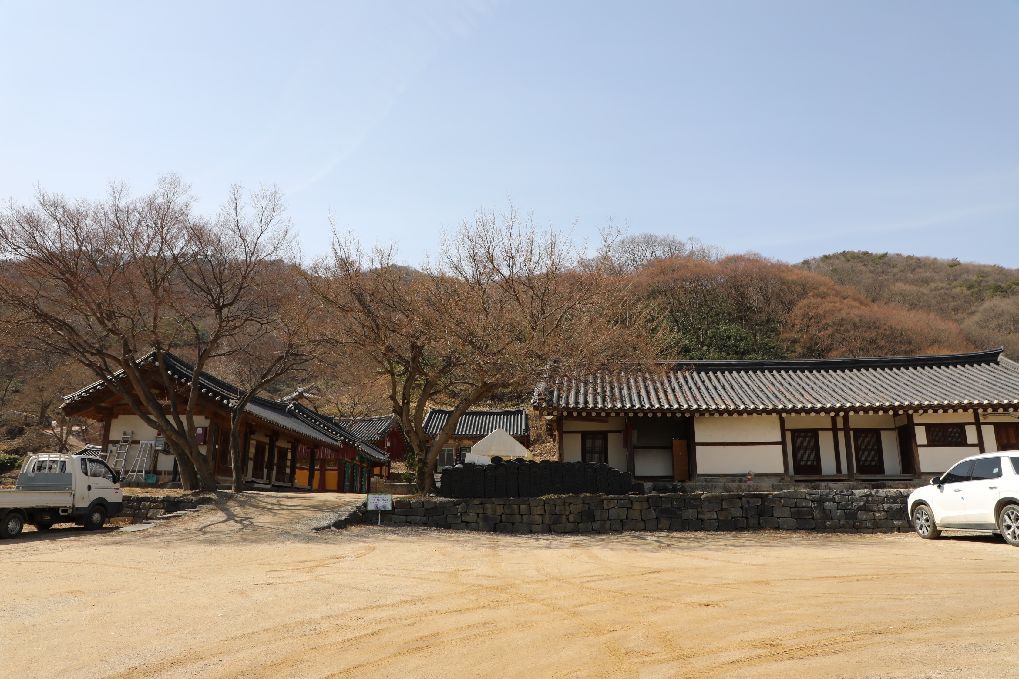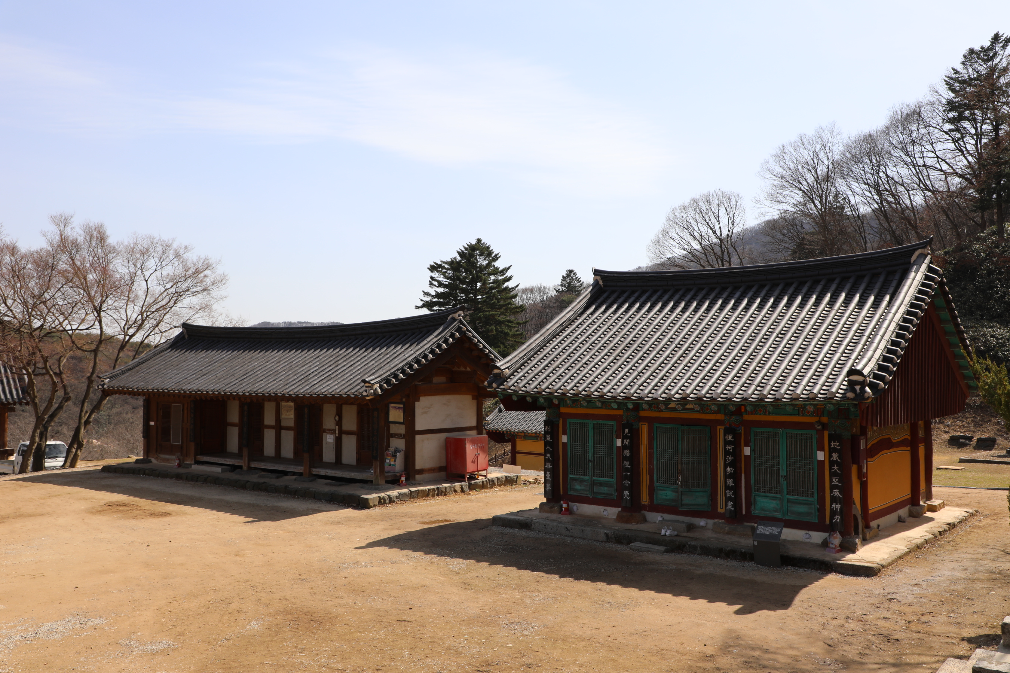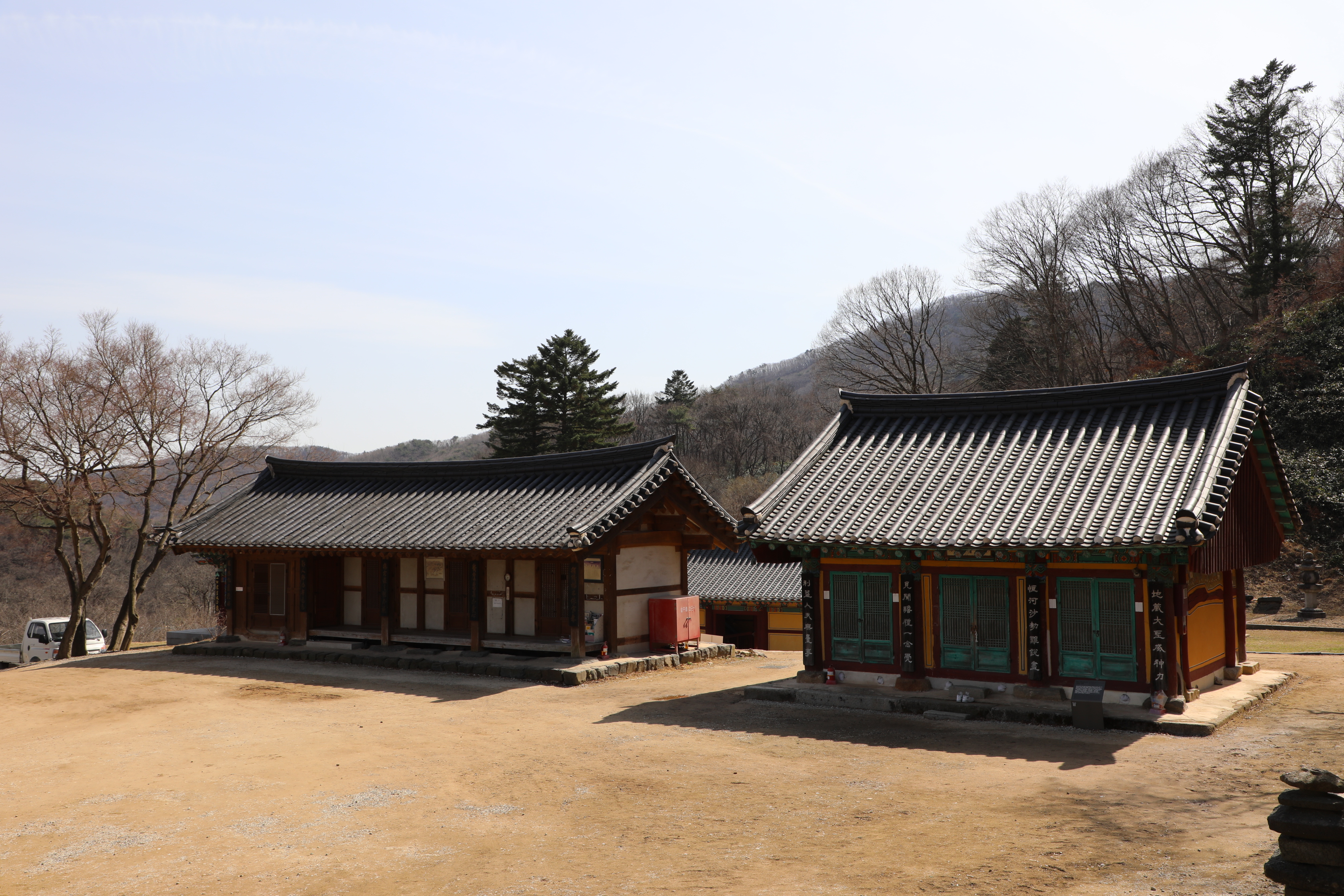 주차장은 시멘트 포장이 되었으나 경내는 흙이 있는 맨땅이다.