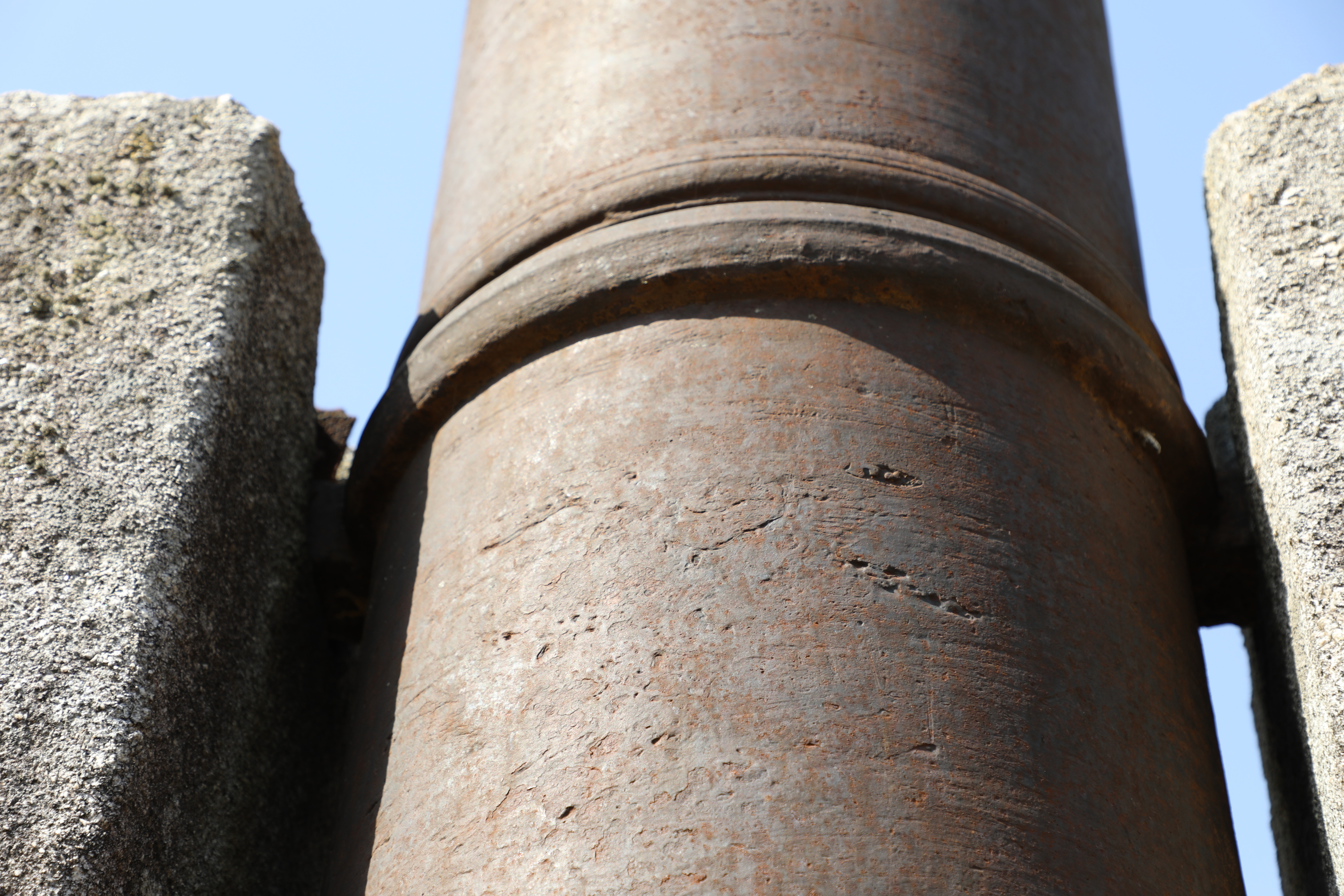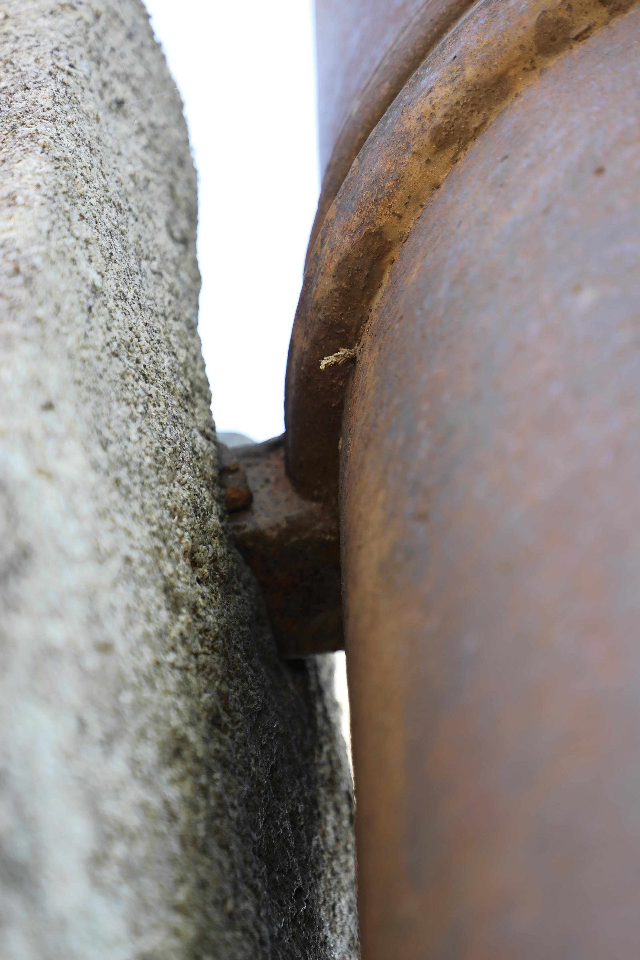 석재 지주가 끝나는 곳에 홈을 파 철당간이 홈에 밀착되도록 돌기를 만들어 집어넣었다.