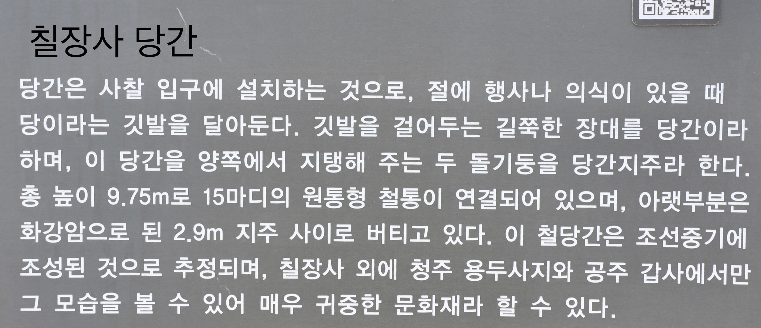 칠장사 철당간도 용두사지나 갑사의 철당간만큼 중요한 문화재이기 때문이다.