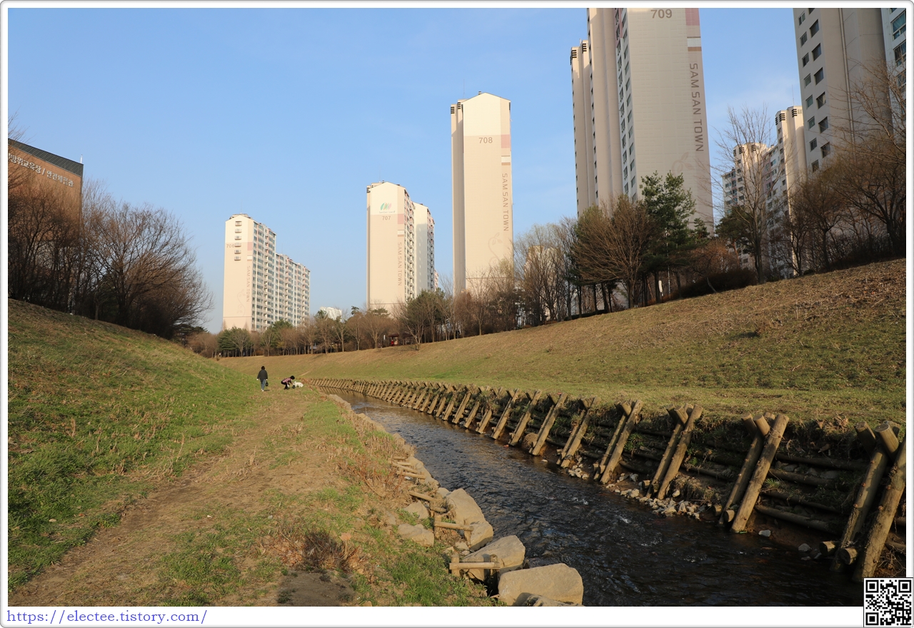 신트리공원을 지나 굴포천 건너 공원을 따라 천천히 장례식장 방향으로 이동한다.