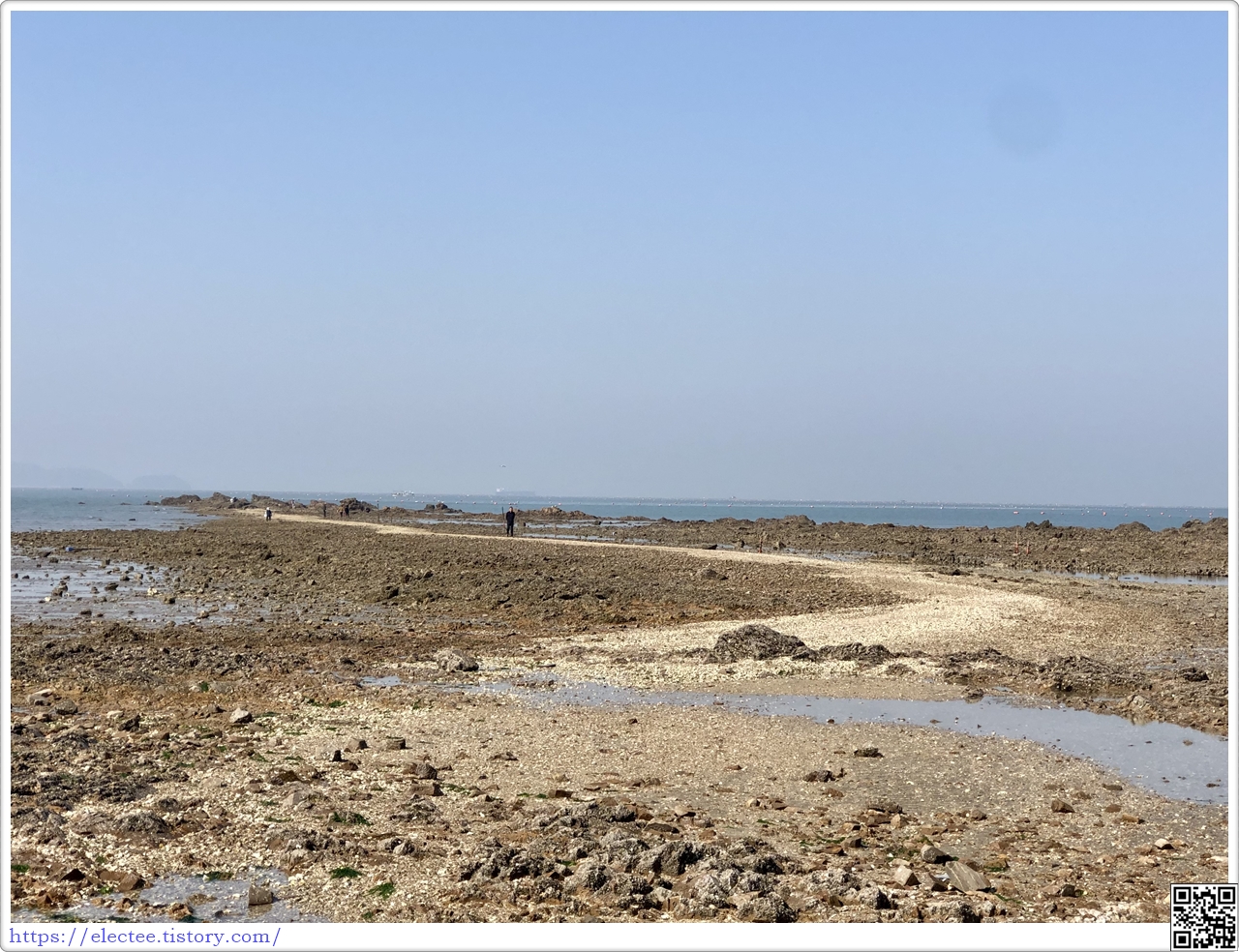 바다로 들어가는 길은 썰물 때는 바다타임에서 바다가 갈라지는 시간을 미리 검색하고 시간에 맞춰 가야 한다.