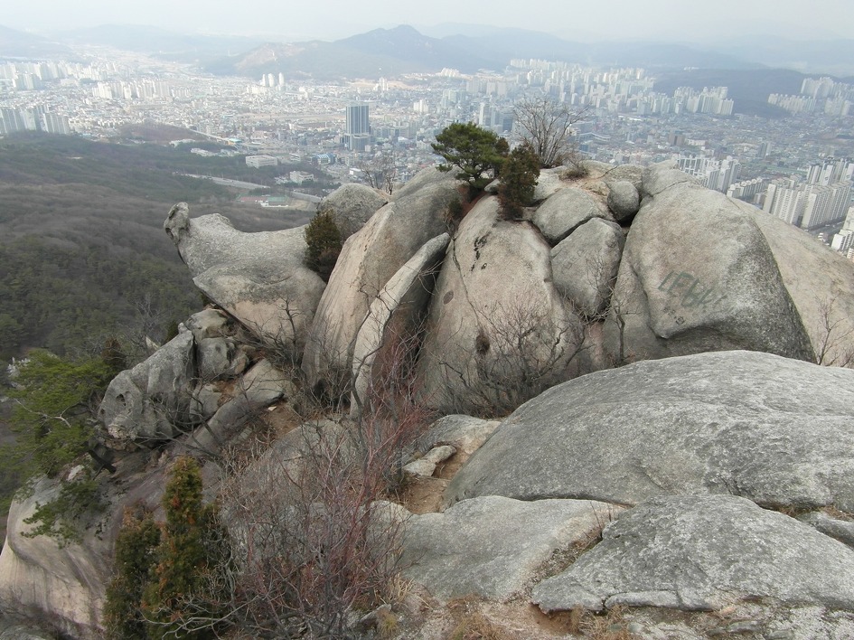 안골능선을 따라 갓바위에 오른 후 사패서능선을 거쳐 원각사로 하산할 때 벌써 해는 겨우 한뼘 정도 남겨놓은 상태라