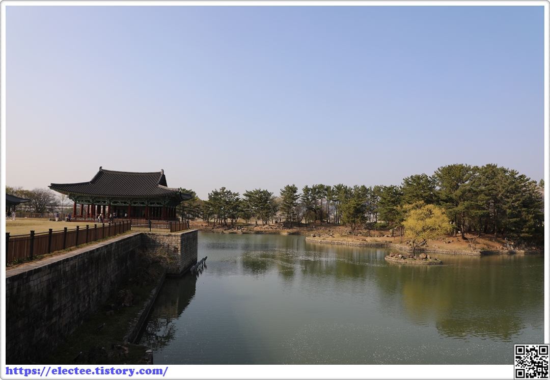 월지의 남서쪽 둘레는 원래부터 이렇게 일직선으로 바다처럼 느끼게 만들었다니 지금 봐도 대단한 안목이다.
