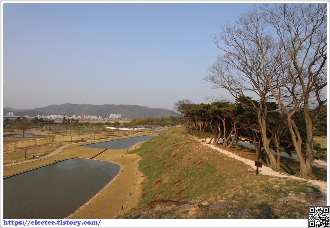 넓게 저수지 형식으로 복원해 멀리서 봐도 해자라는 걸 금방 알 수 있다.