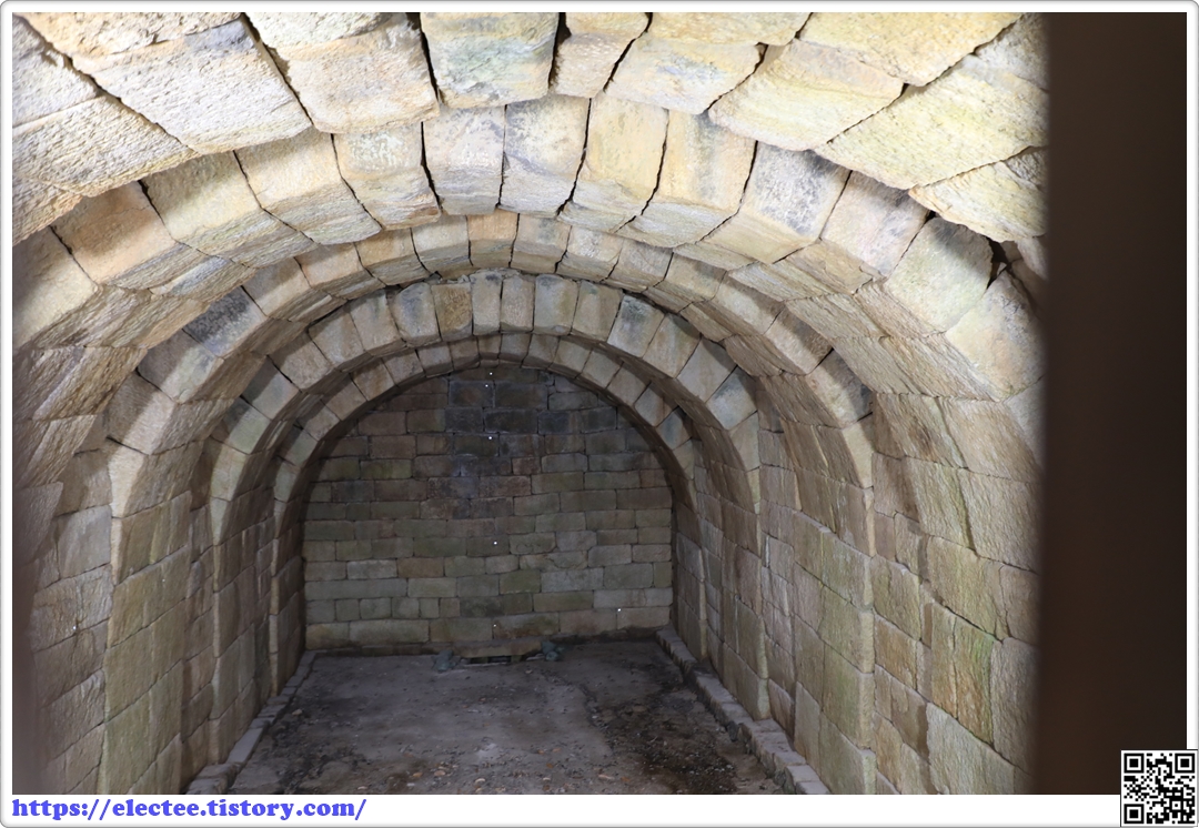 남쪽에 마련된 출입구를 들어가면 계단을 통하여 밑으로 내려가게 되어 있다.