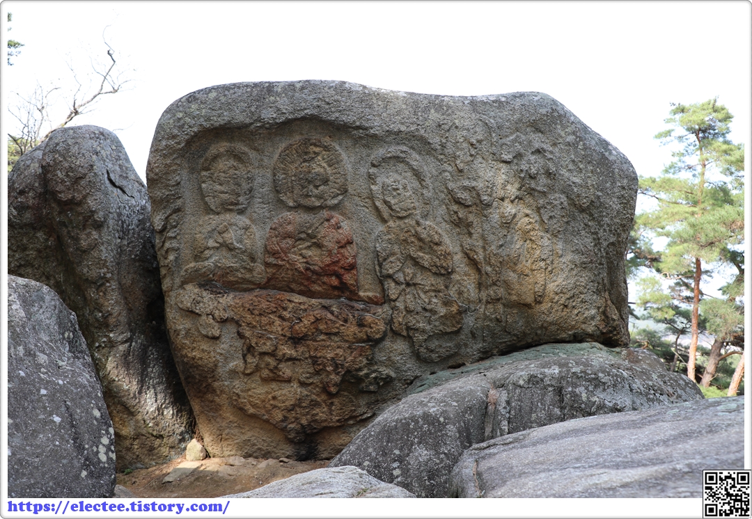 큰 바위 위에 있는 바위에도 삼존불은 물론 마애불상까지 있다.