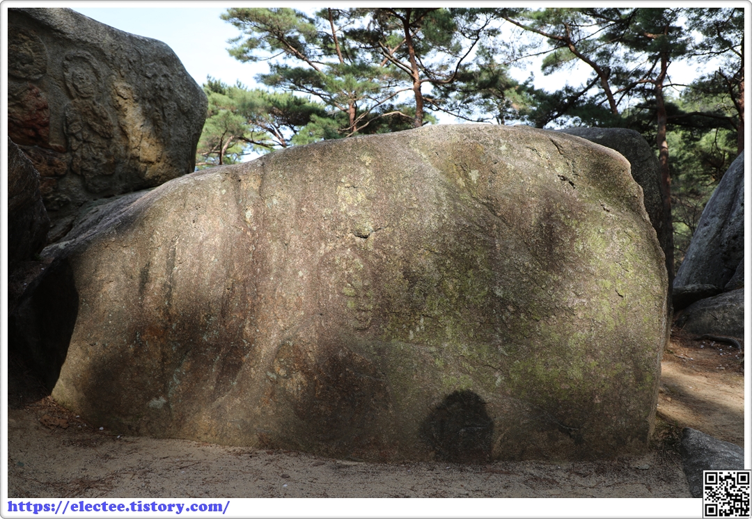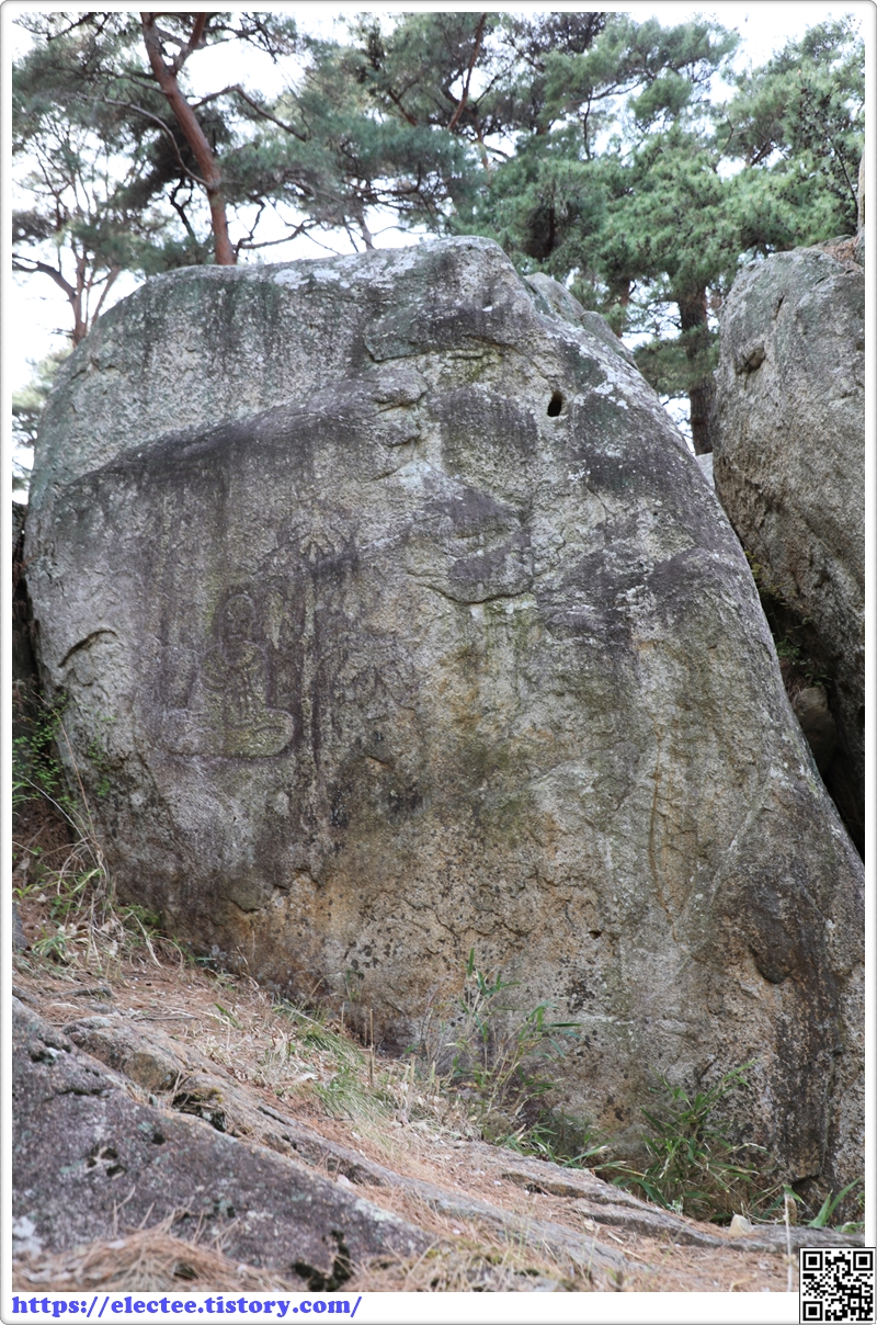 탑곡마애조산군을 모두 둘러보고 하산길에 만나는 제일 큰 바위의 남면에 그려진 작품이다.