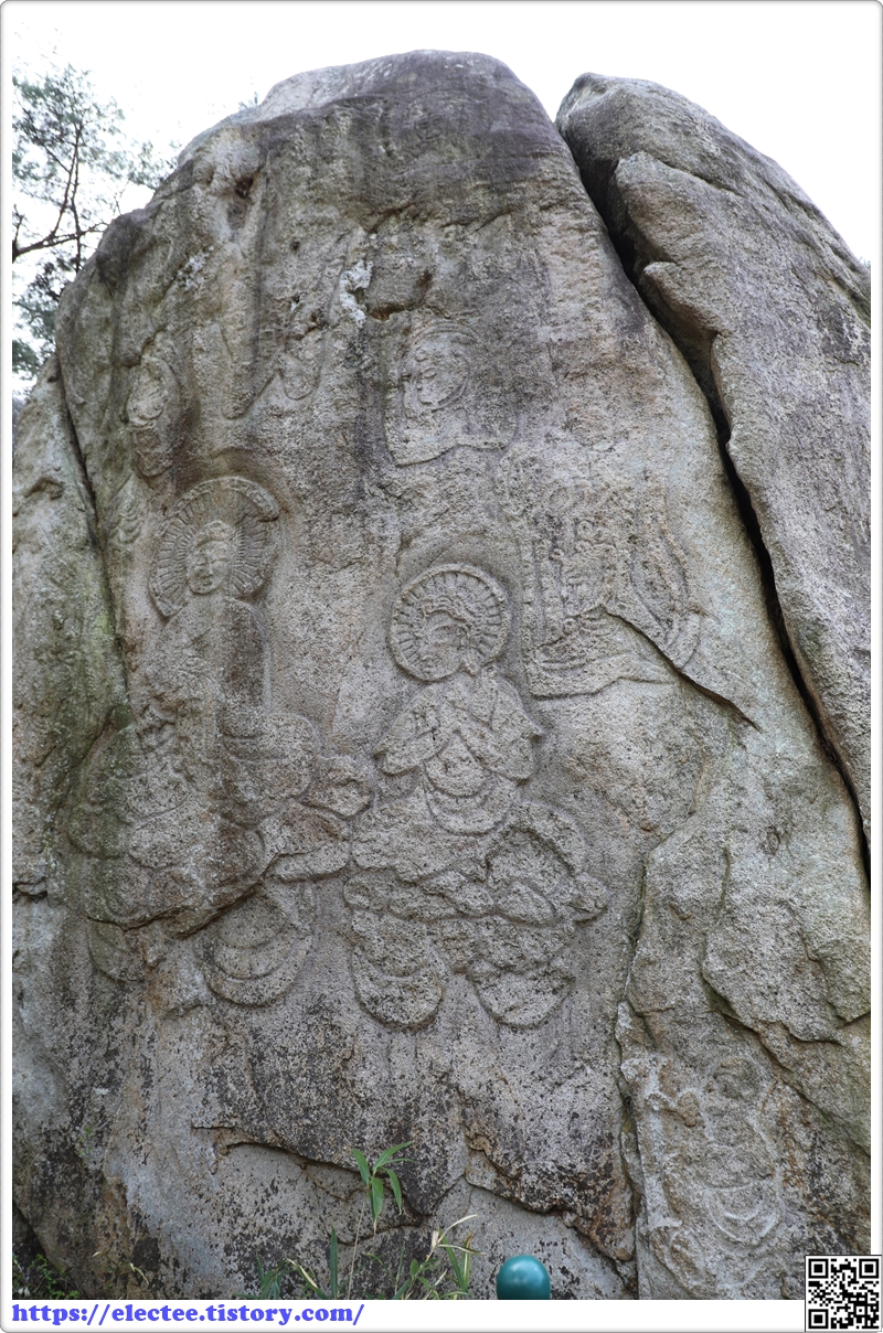 9m나 되는 사각형의 커다란 바위에 여러 불상을 회화적으로 묘사하였다.