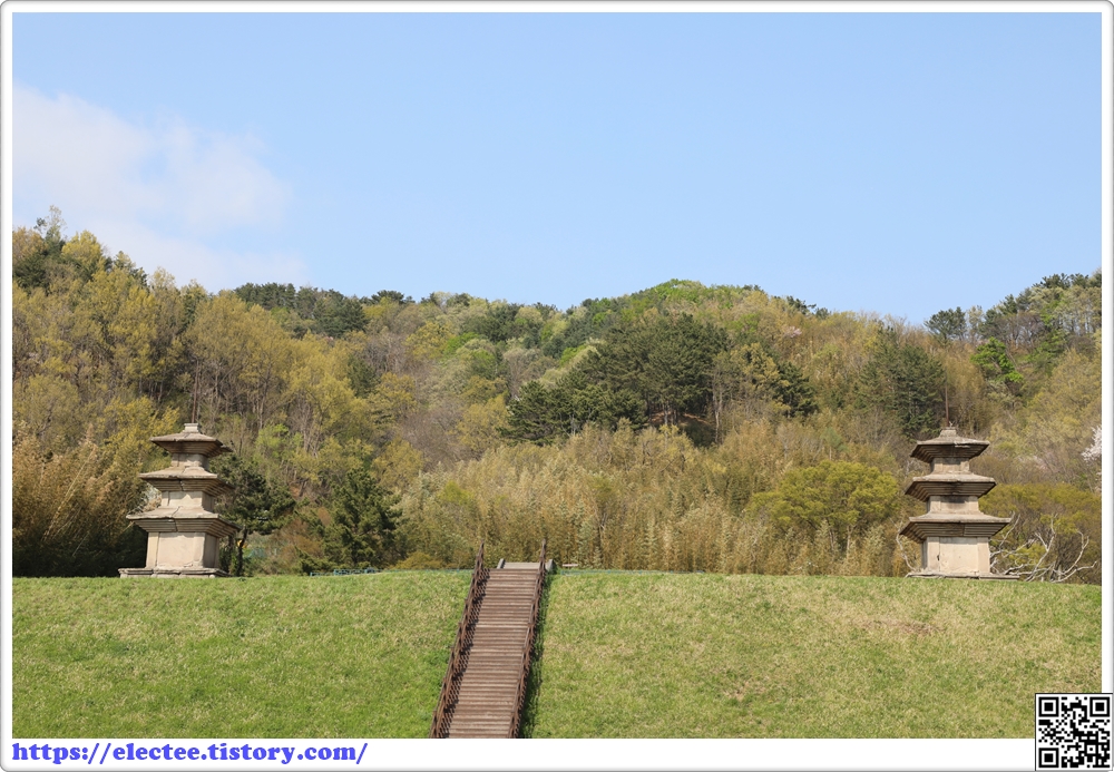 석굴암 다보탑이 화려하고, 석가탑은 단순하면서 단아하다면 이곳은 두 탑이 갖는 균형미가 돋보인다.