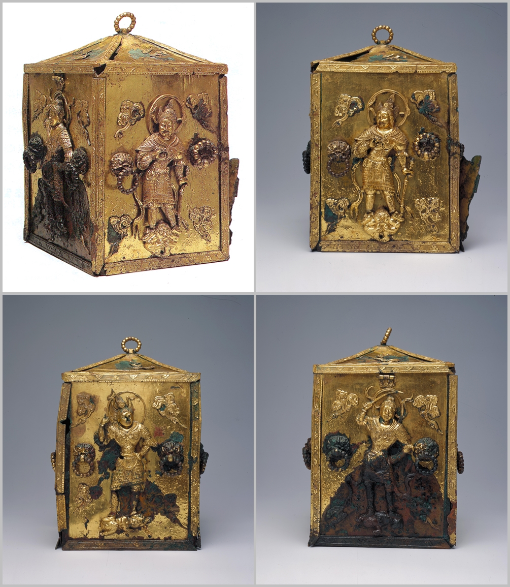 외함의 네 벽면에는 사리를 수호하는 사천왕상이 표현되어 있으며,