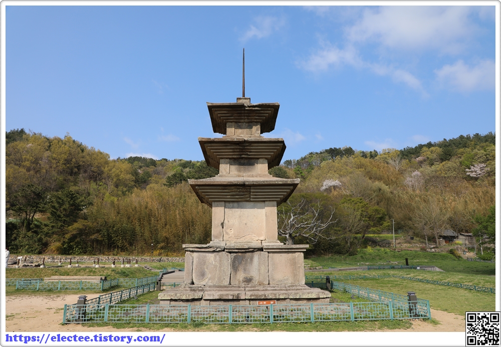 경주에 있는 삼층석탑으로는 가장 거대하며, 동해를 바라보는 높은 대지에 굳건히 발을 붙이고