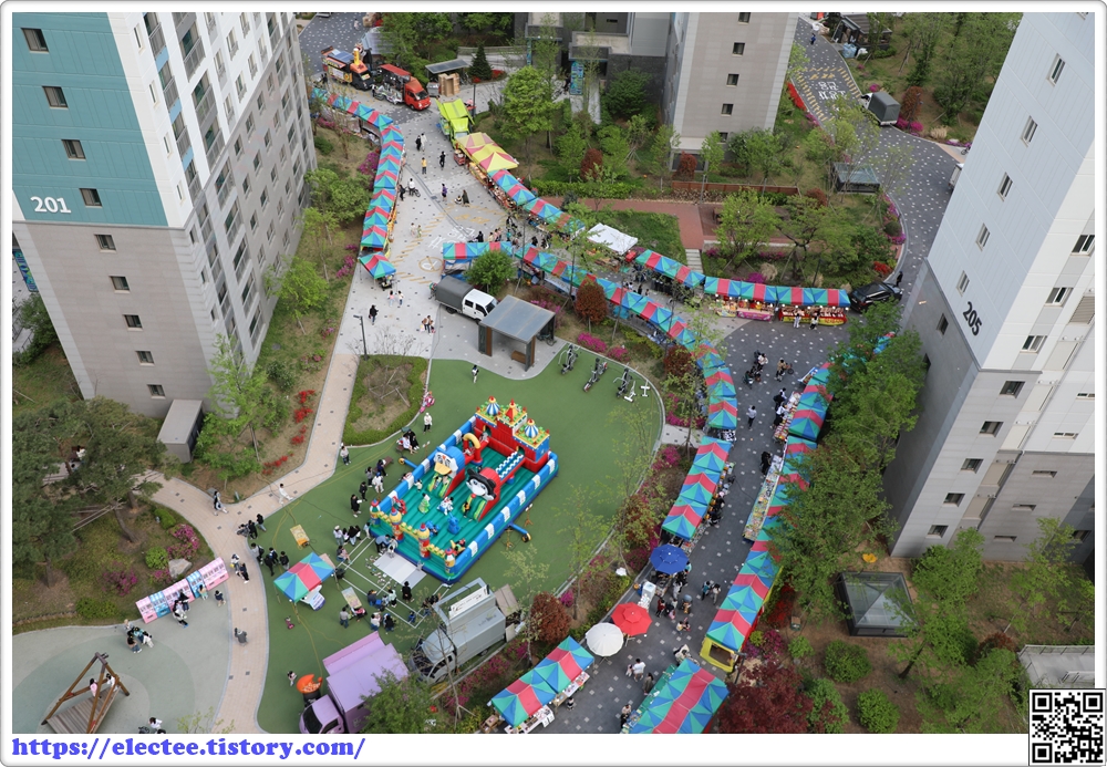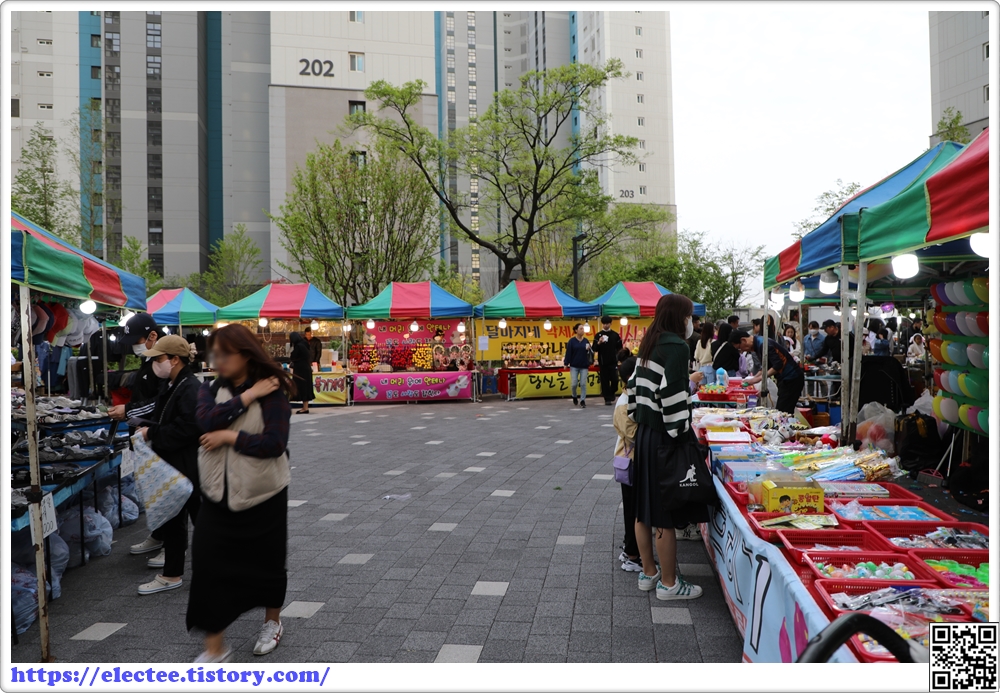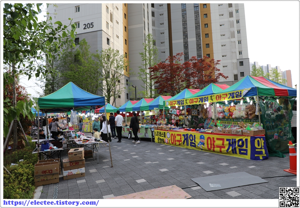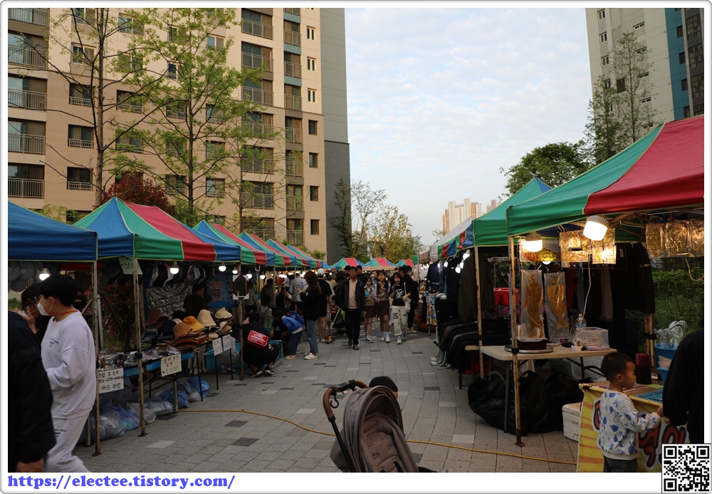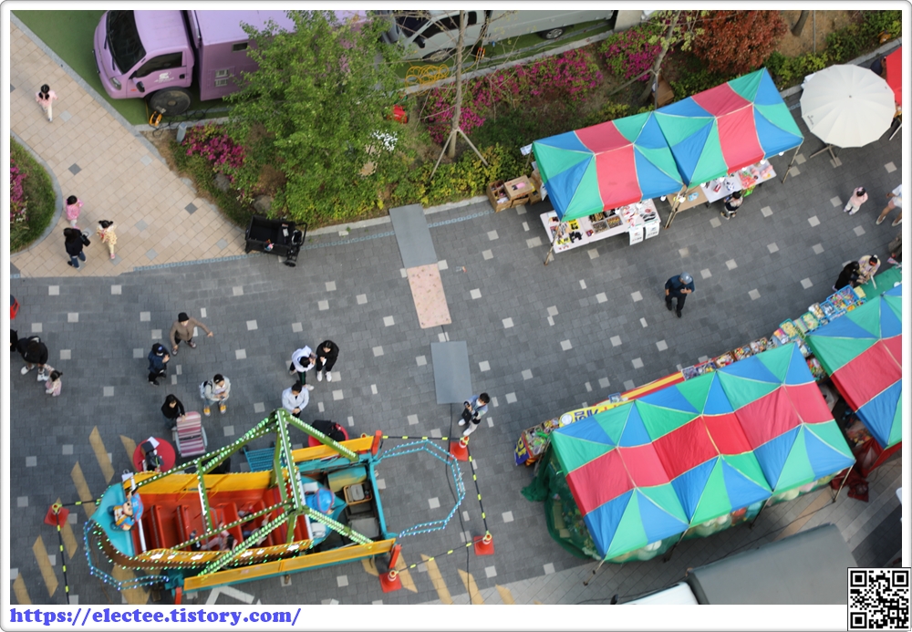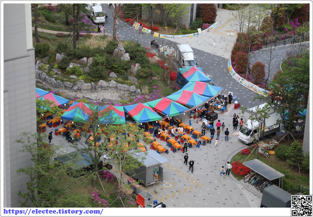 하도 궁금해 밖을 내다보니 단지 내 시장이 열린 것이다.