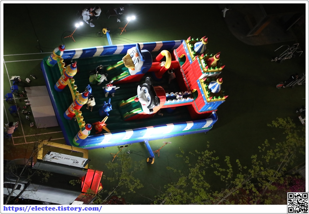 동화나라의 궁전은 휴대하기 좋게 바람을 넣어 펼친 궁전이다.