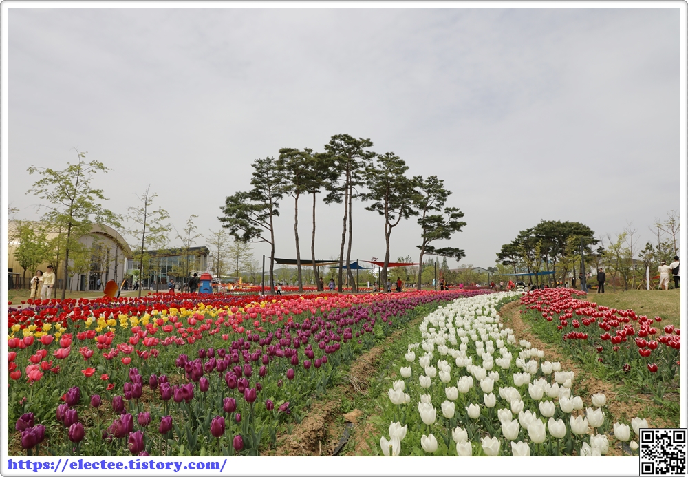 가족끼리 혹은 연인끼리 들려 만개한 튤립꽃을 즐기고 있다.