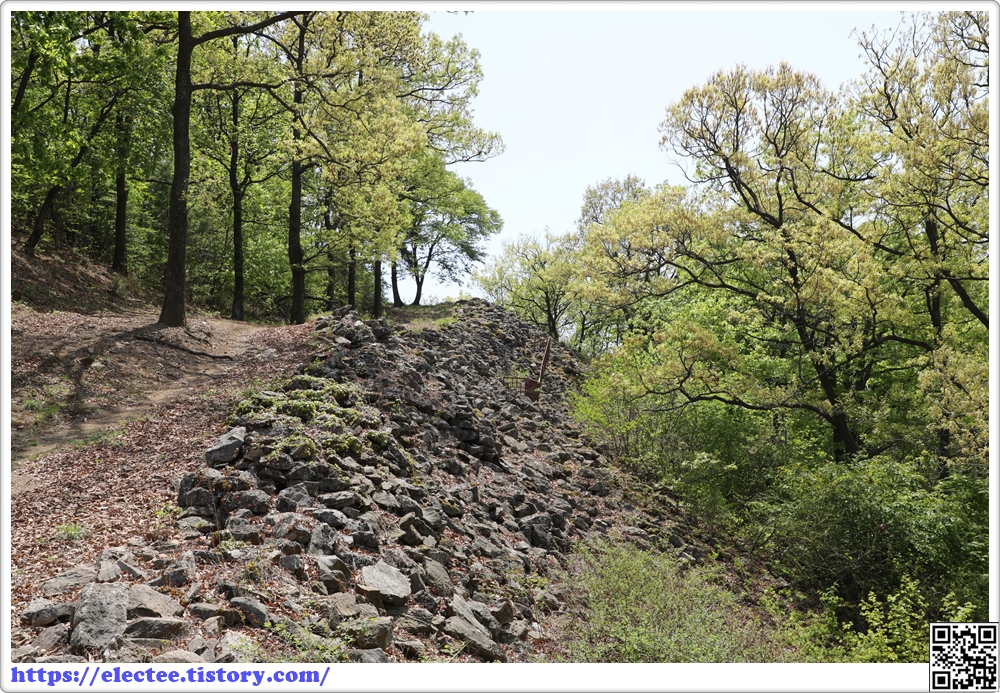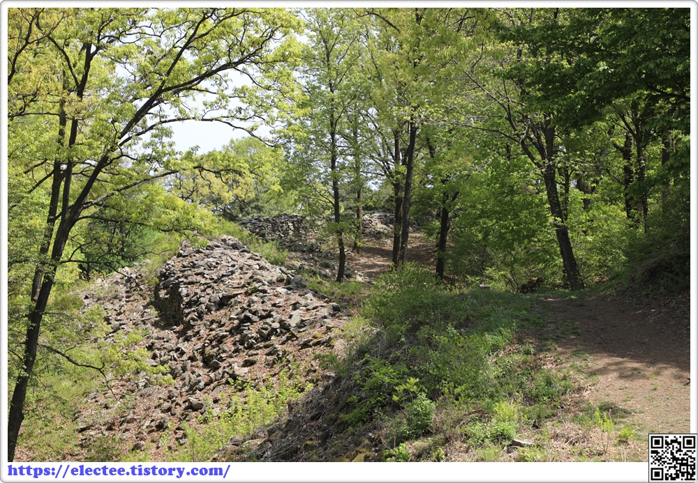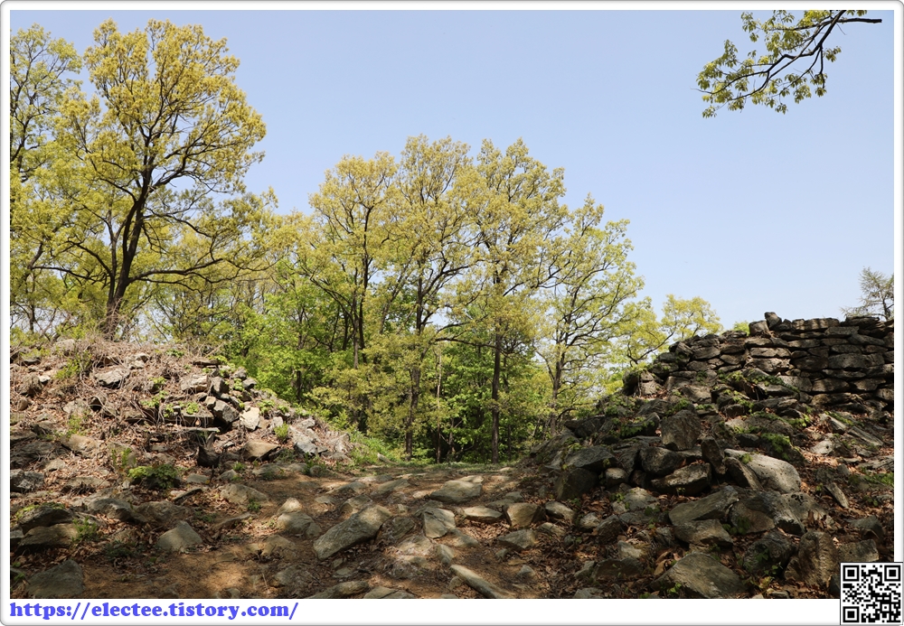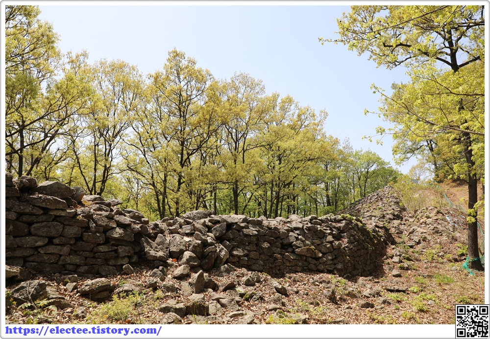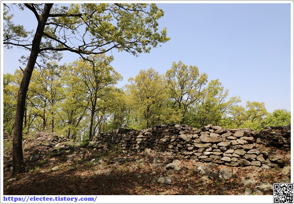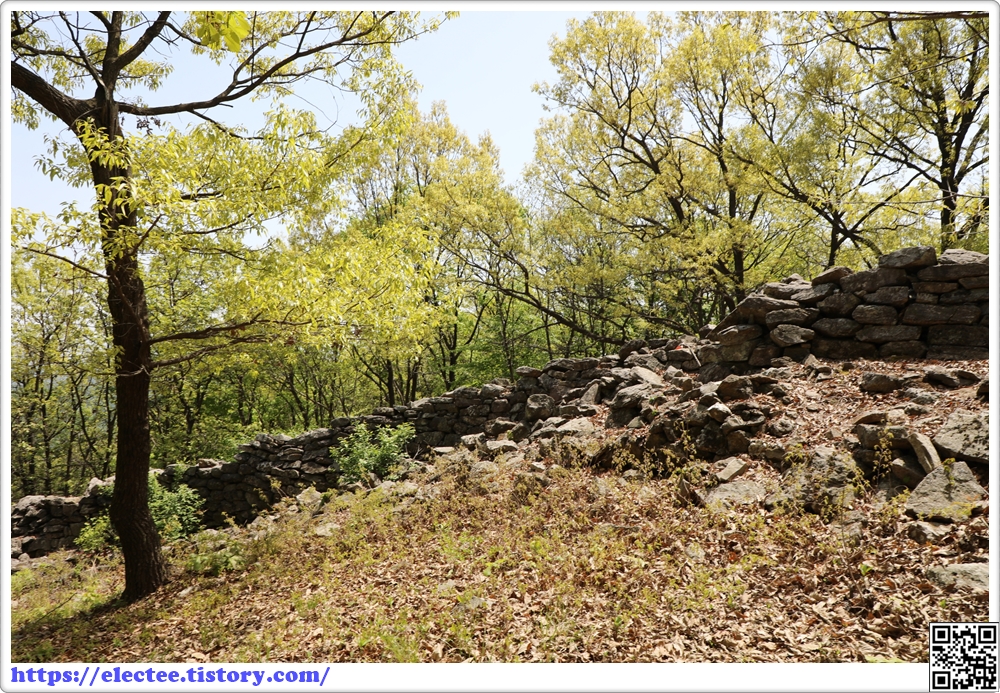 이곳은 무너진 석축 사이로 조금 온전한 형태로 남은 성벽이 보인다.