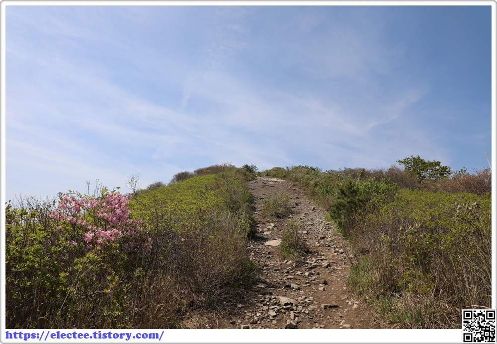 등산로 주변으로 점점이 박힌 철쭉꽃이 삼삼하게 눈에 어른거린다.