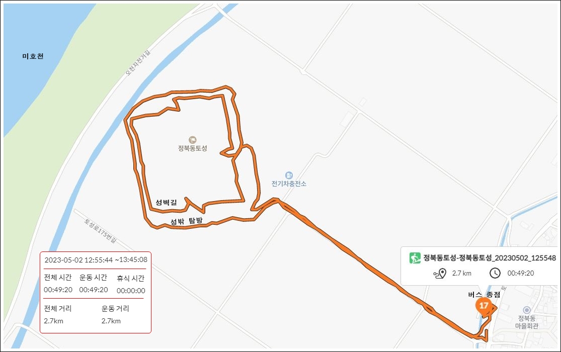 2023.5.2. (화) 12:55~13:45, 50분 탐방 2.7km 이동