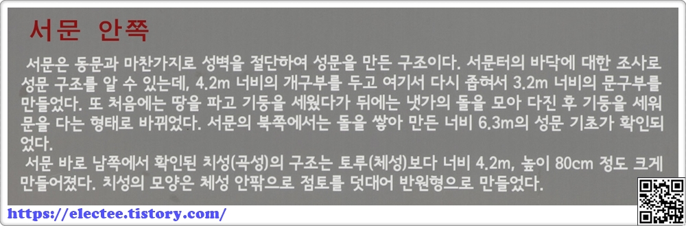 서문은 동문과 마찬가지로 일직선 상의 성벽을 절단하듯 통로를 만들었다.