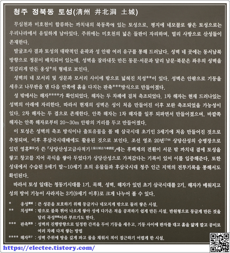 사적인 정북동 토성이 위치한 곳은 금강의 최대 지류인 미호천의 남안에 인접하고,