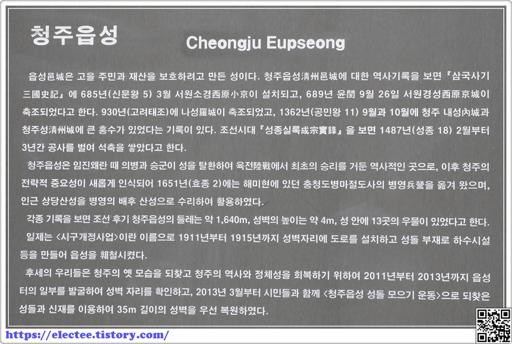 『세종실록(世宗實錄) 지리지(地理志)』에 “청주읍성은 석축이고 둘레가 1,084보인데 성안에 우물이