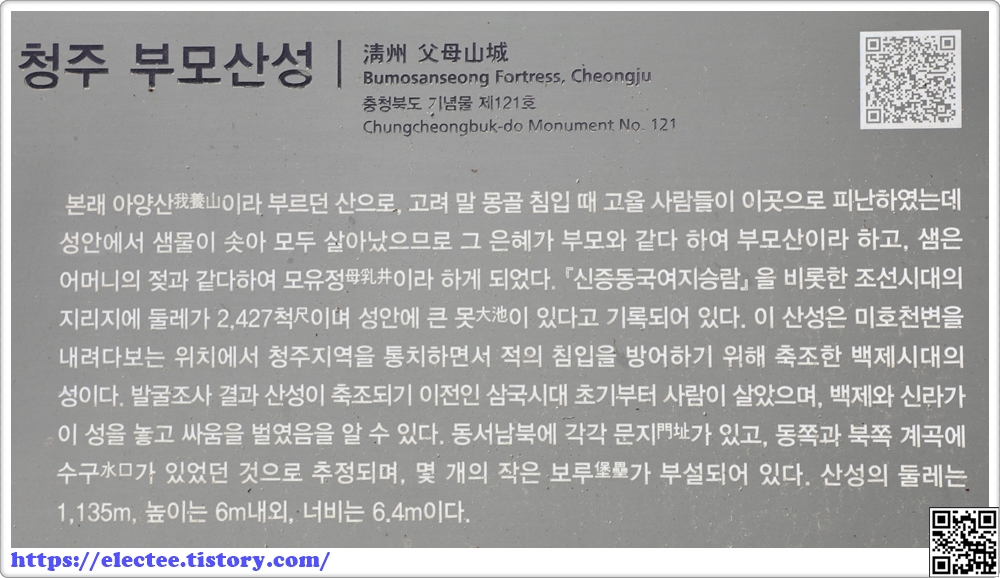 이번 여행에서 본 상당산성과 정북동 토성은 제법 알려졌지만, 부모산성은 금시초문이다.