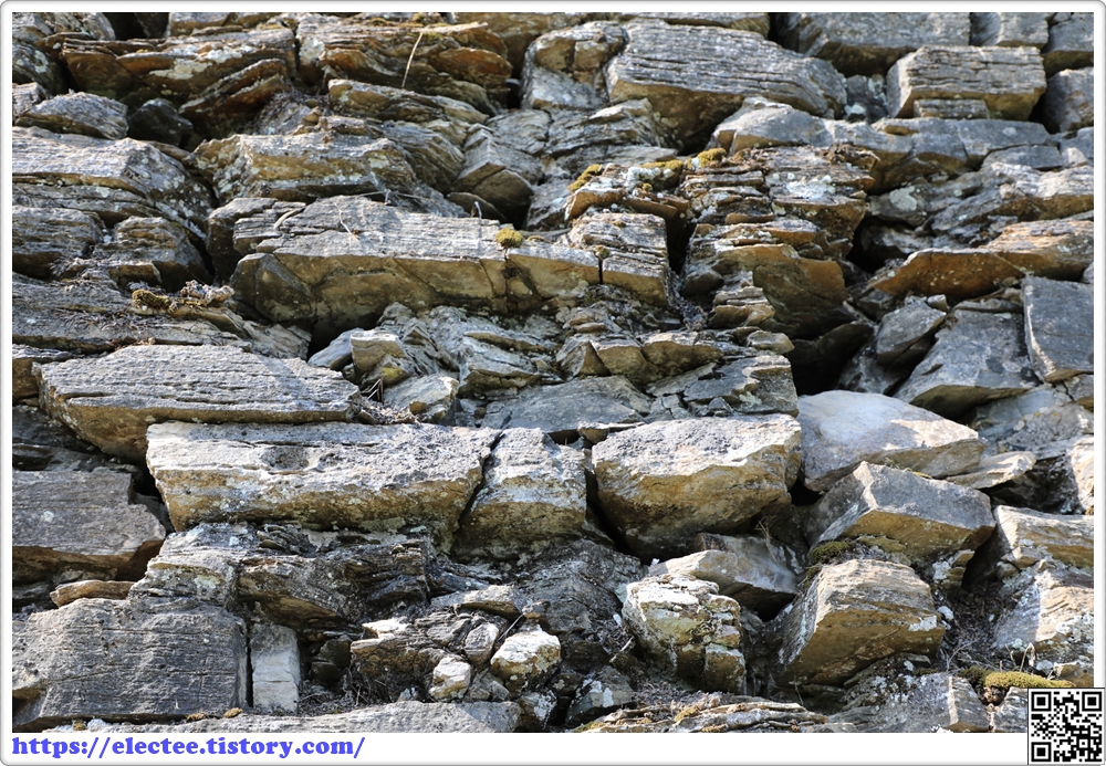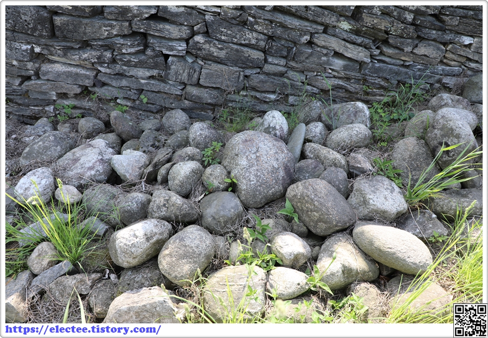 비교적 얇게 다듬은 돌로 쌓은 석축이라 조밀한 느낌이다.