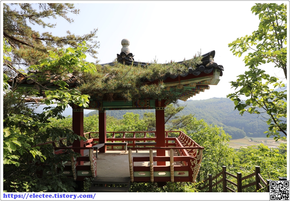 온달관광지에서 온달산성까지의 거리 중 2/5 지점에 위치한 정자다.
