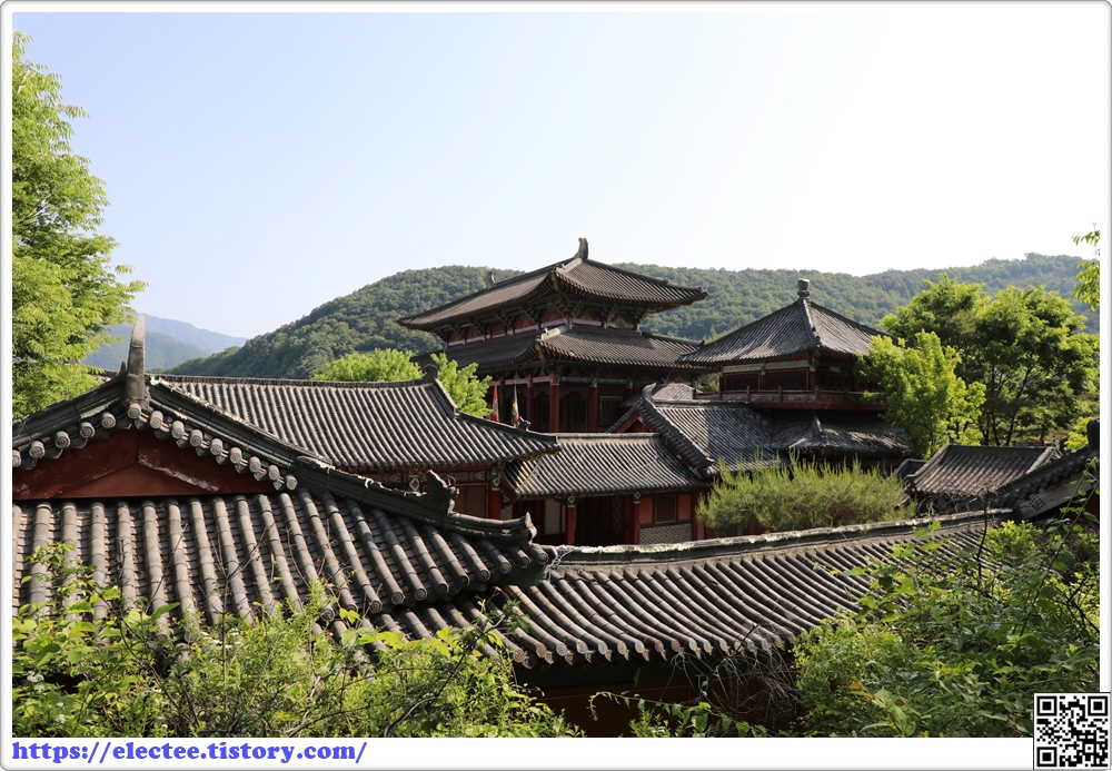 온달산성으로 오르며 보는 온달관광지 내부 건물의 모습