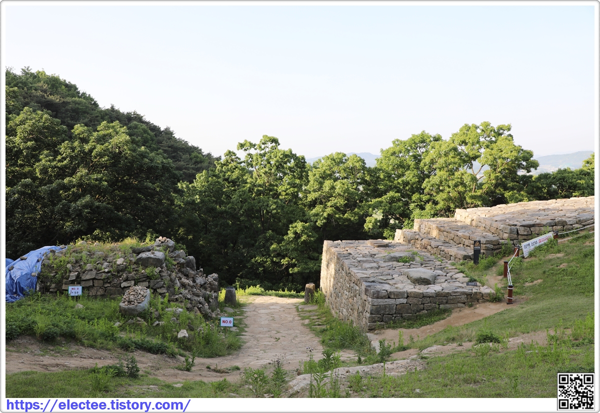 산등성이로 이어지는 주요 지점에는 치*와 포루** 터가 있으며, 동문과 남문이 있었던 것으로 확인된다.
