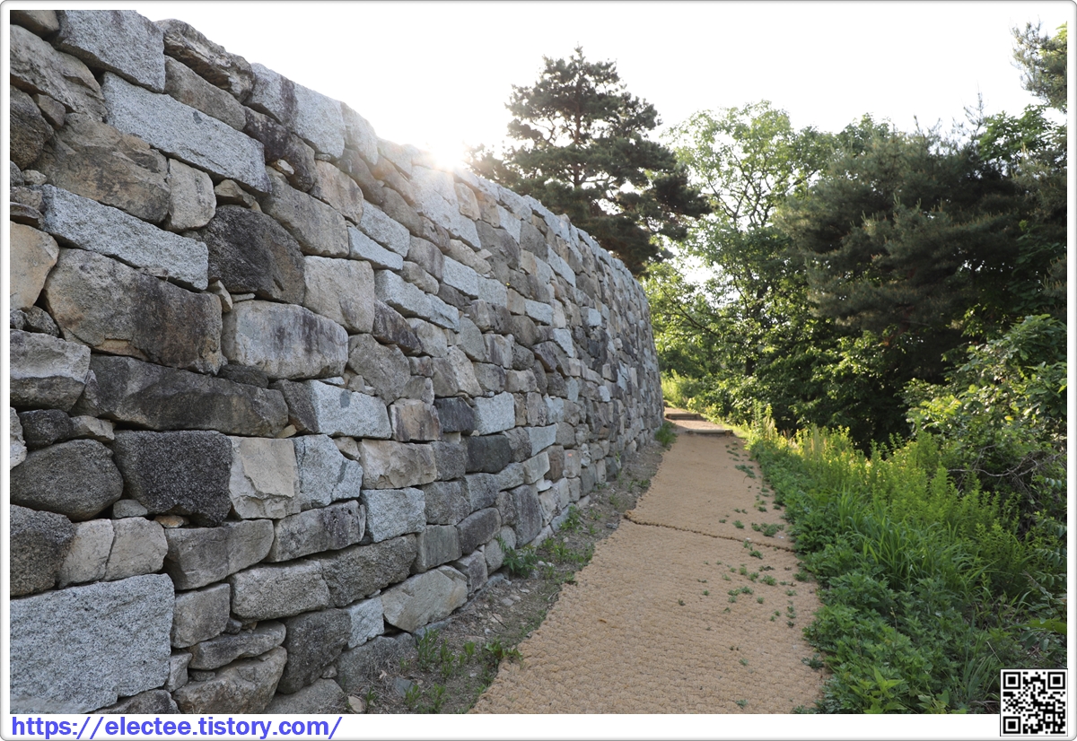 복원된 구간과 원래의 성벽이 자연스럽게 만나는 구간이다.