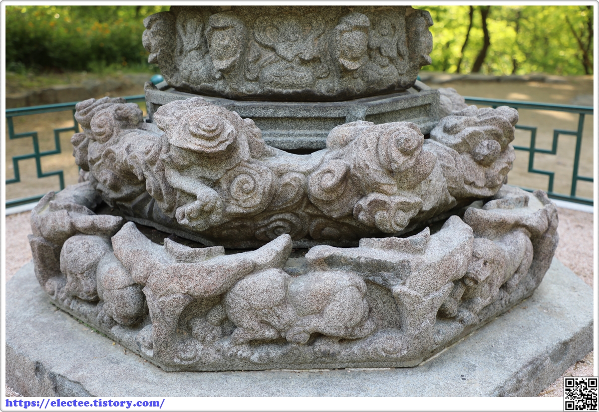 우리나라 화강암은 워낙 단단해 이렇게 조각하지 못하는 데, 회색 점이 촘촘히 박한 석재라 평소 보지 못하던 재질이다.