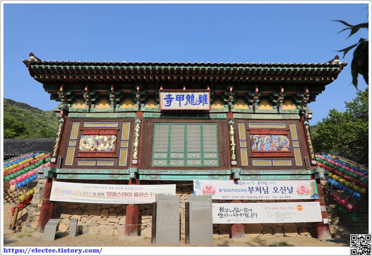 단청은 완전히 퇴색되어 무늬의 흔적만 남아 있다. 절도사 홍재의가 쓴 ‘계룡갑사(鷄龍甲寺)’라는 현판이 걸려 있다.