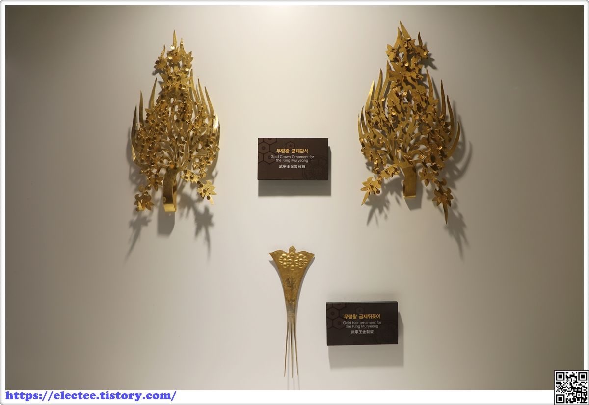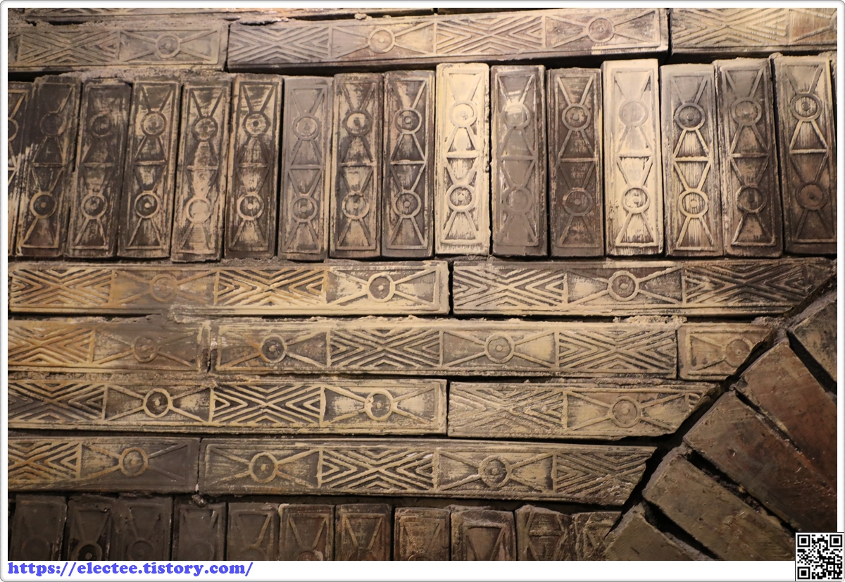 전시실에 들어서면 내부는 무령왕릉 내부를 마감한 벽돌 모양으로 인테리어를 했다.