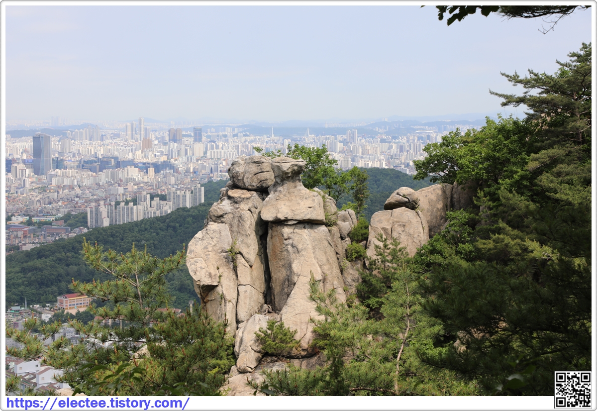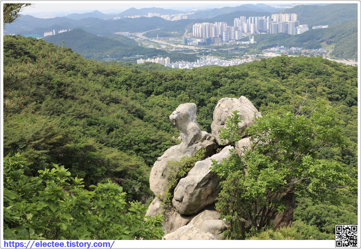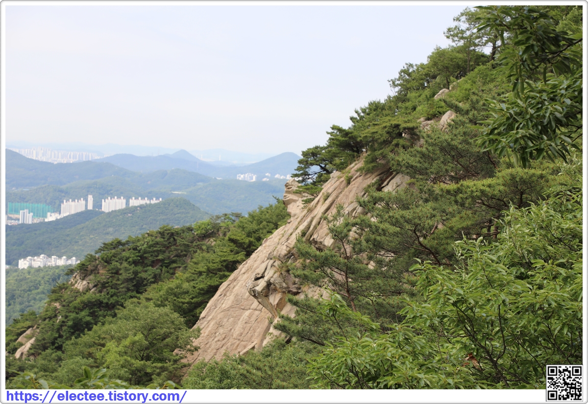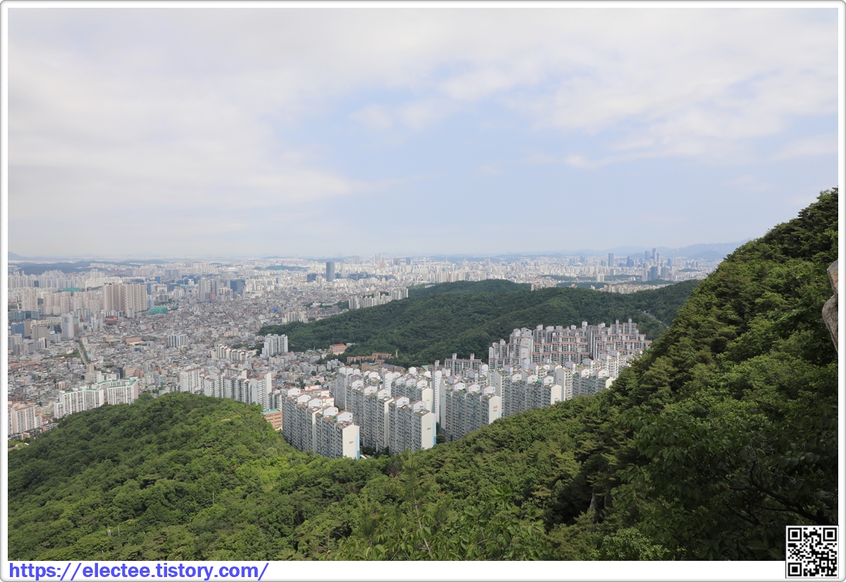 신랑신부바위 뒤에서 보니 벽산 5단지 아파트는 호암산 숲에 둘러싸인 형국이다.