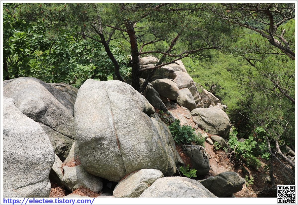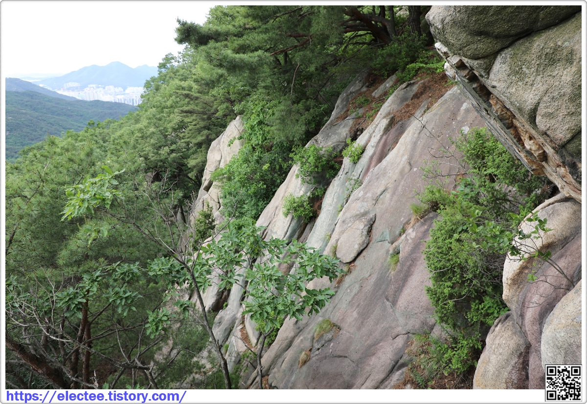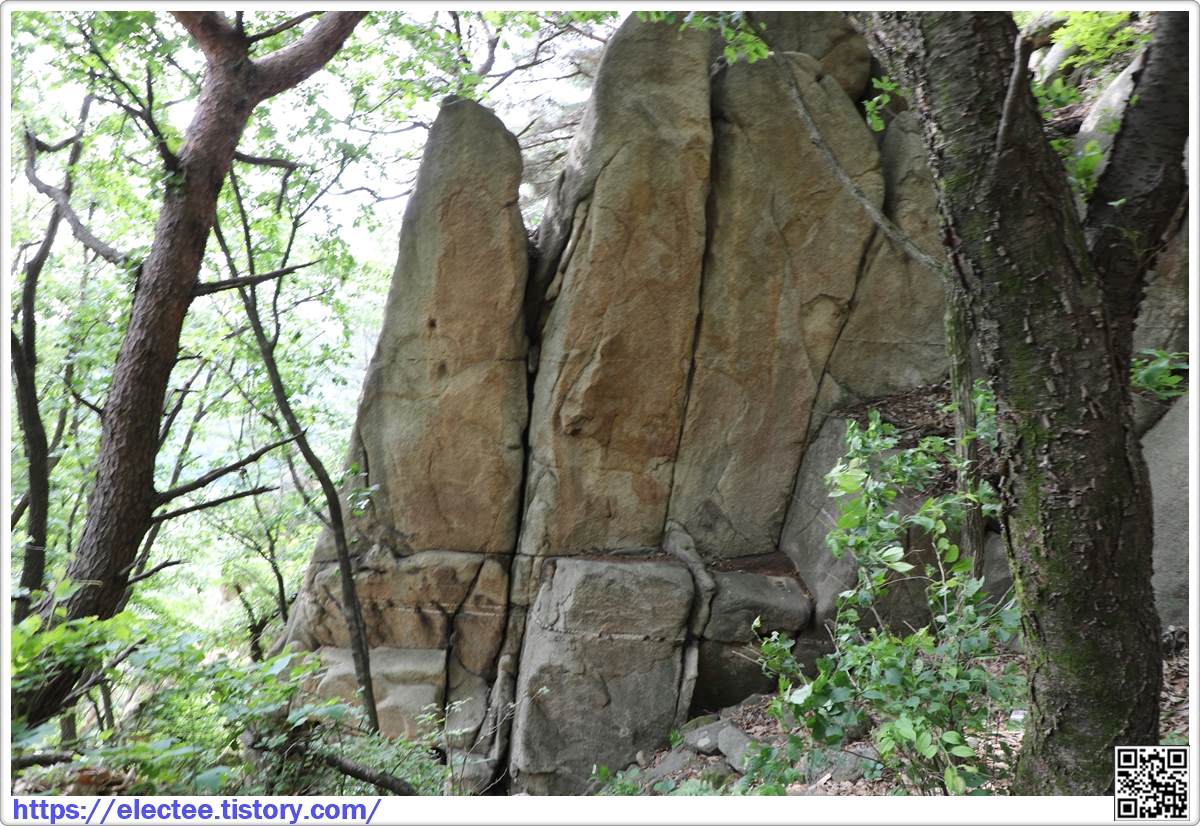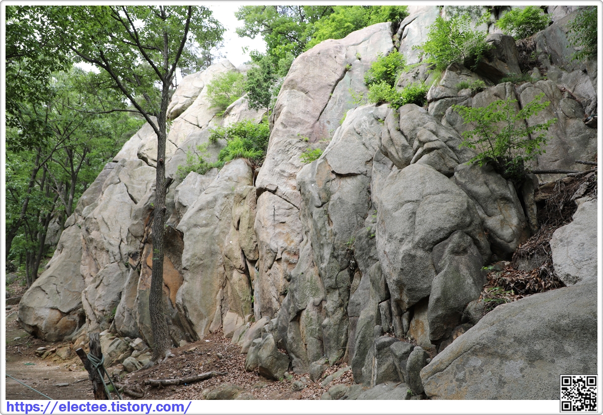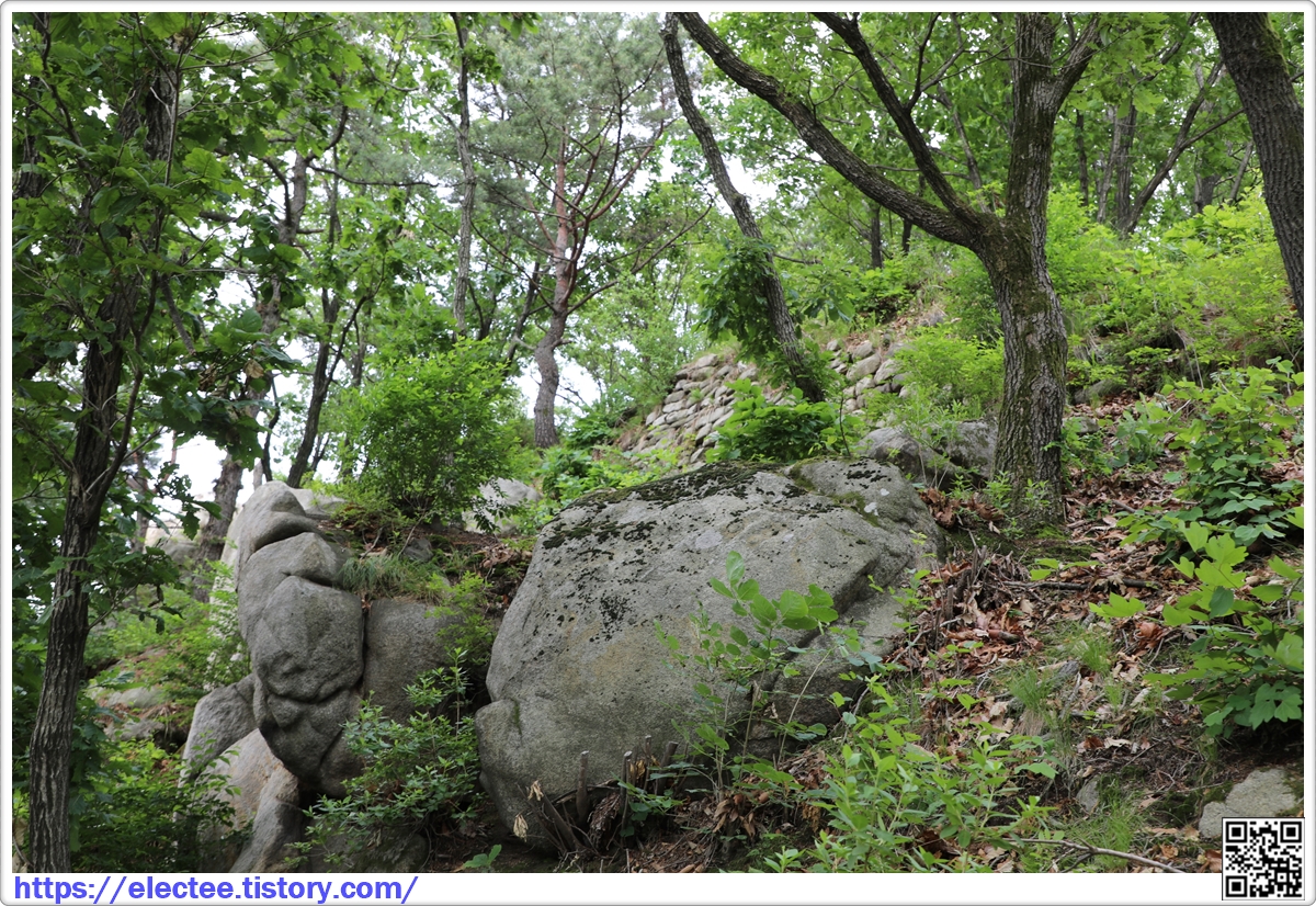 굳이 성벽을 쌓지 않아도 높고 가파른 이런 바위나 암벽이 산성 역할을 대신 한다.