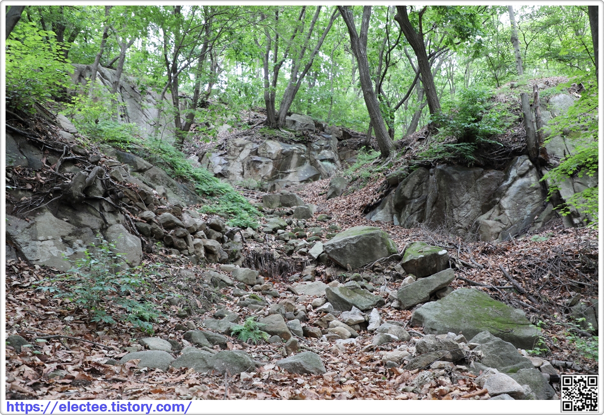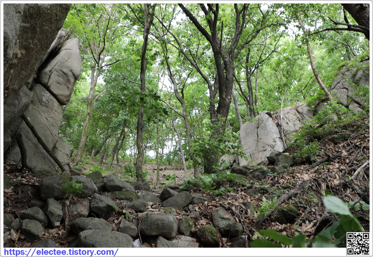 신랑신부바위 쪽으로 드나드는 곳에도 산성으로 쌓은 돌이 보인다.