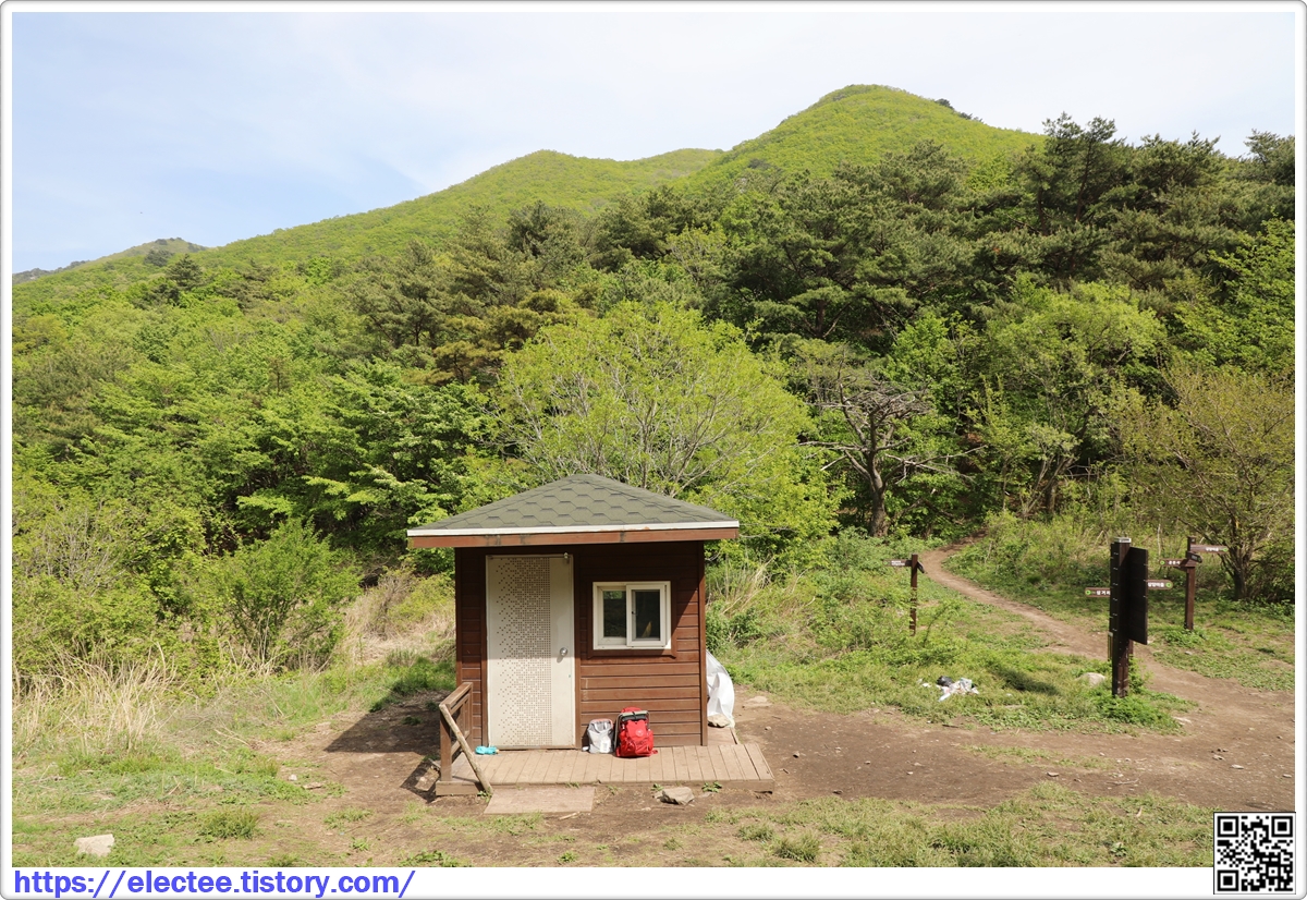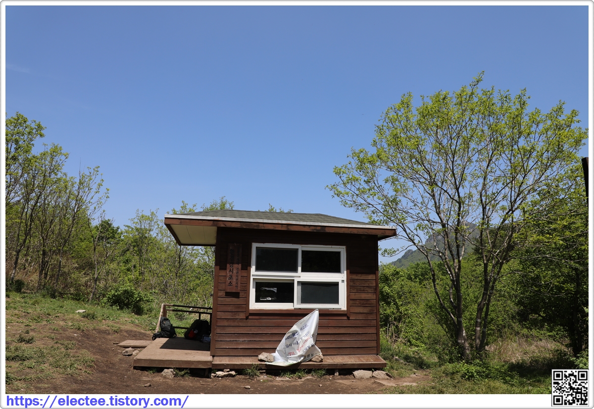 한 시간 5분을 걸을 끝에 2.76km 지점의 아랫재에 있는 산불감시초소에 도착했다.