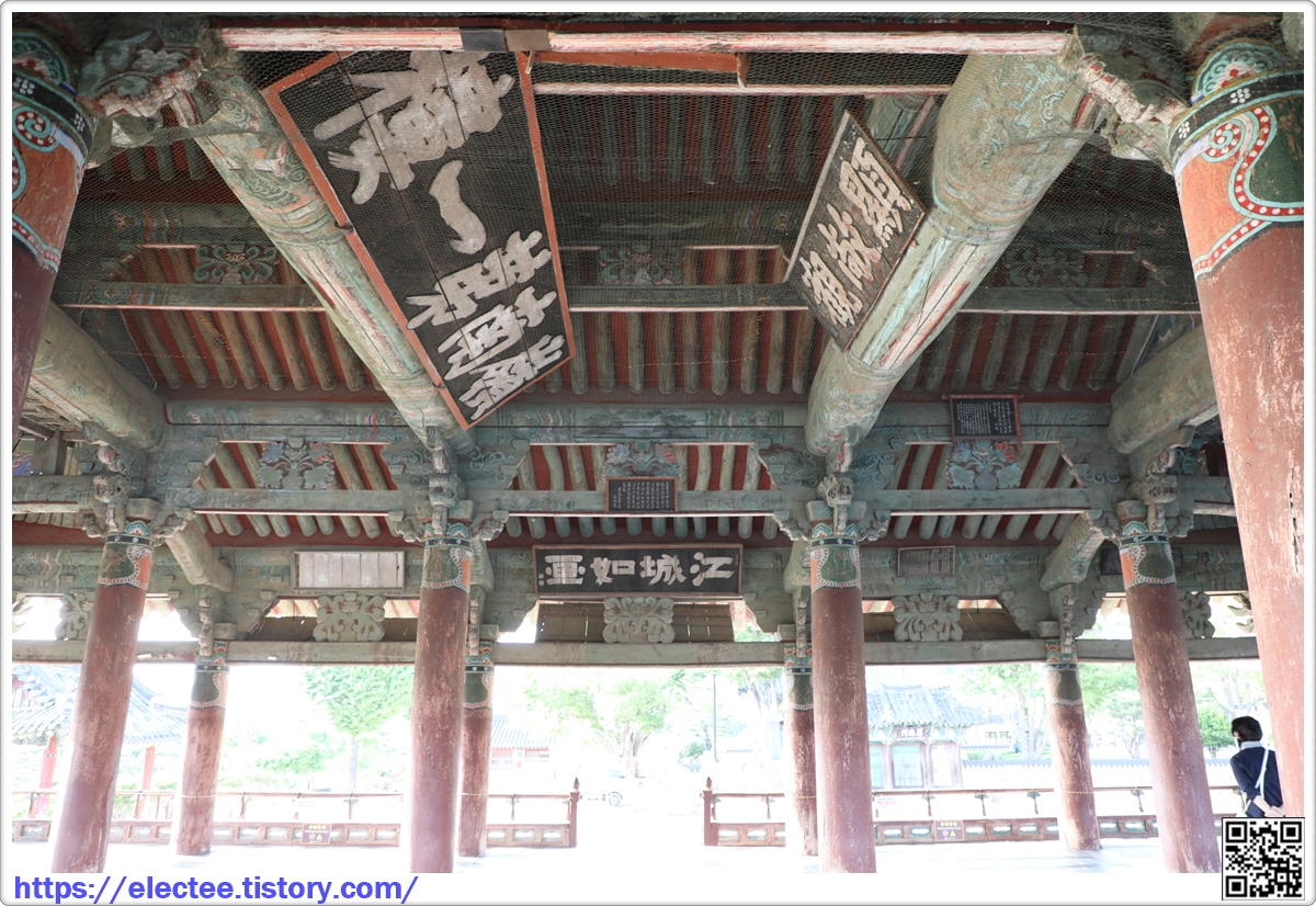 특히 화려한 단청과 다양한 문양조각이 한데 어우러진 누각에는 퇴계 이황, 목은 이색, 문익점 선생 등