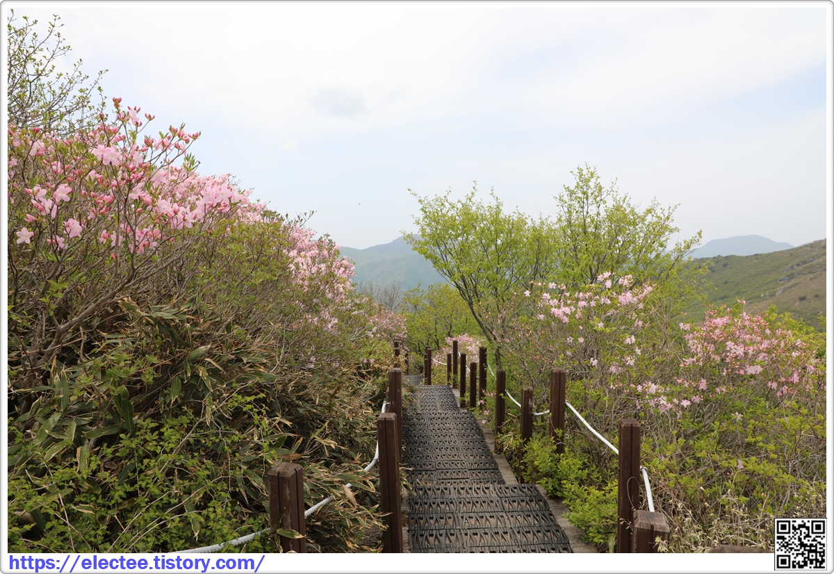 제법 많은 철쭉꽃이 즐풍의 영알 8봉 인증을 축하라도 하듯 일제히 일어서서 열렬히 환영한다.