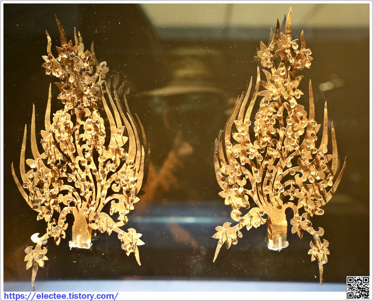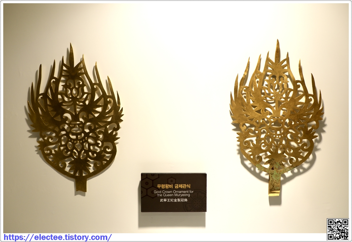 무령왕비의 금제관식은 왕비의 머리 부분에서 거의 포개어진 채 발견되었다.