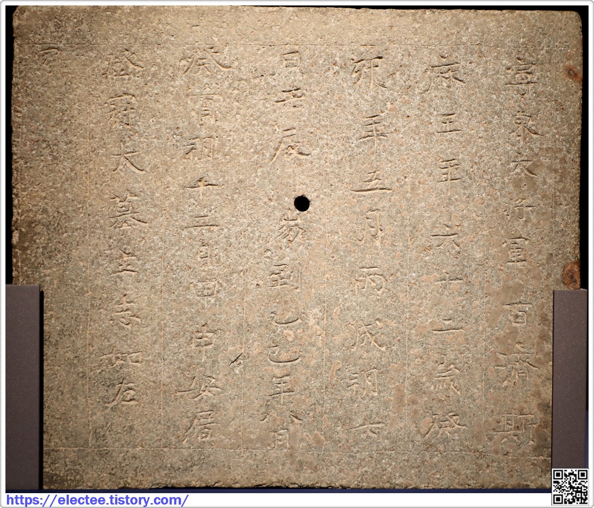 당시 중국으로 거너가 장군까지 지낸 후 사망하며 한문 종주국에서 만든 묘지석이라 한자의 자체가 좋다.