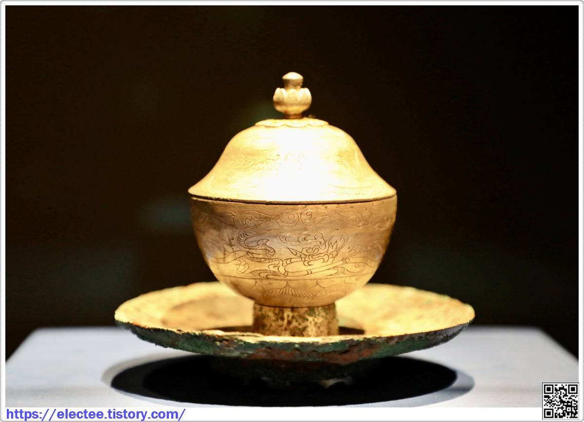 설명 : 왕비의 머리 부근에서 발견되었습니다. 받침托, 잔盞, 뚜껑蓋으로 구성되어 있다.