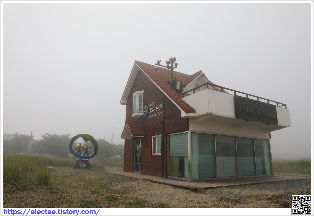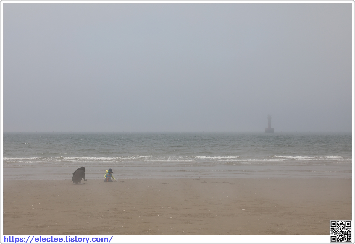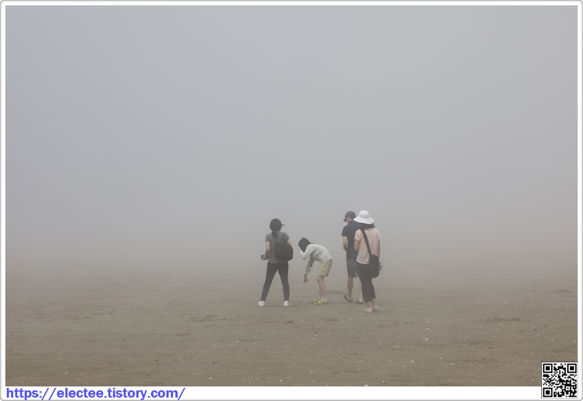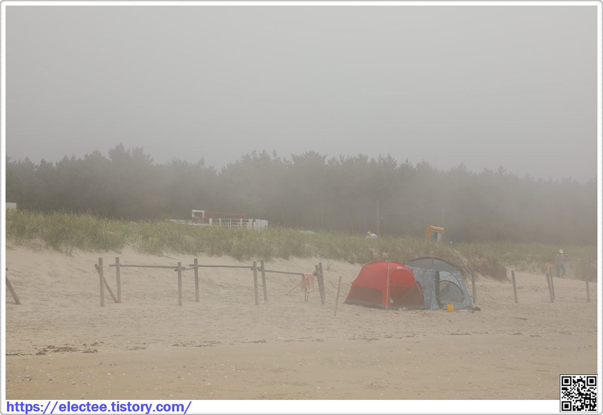 물안개가 뽀얗게 생기며 한 치 앞도 바라볼 수 없는 풍경이라 더 볼 것도 없이 해수욕장에서 나온다.