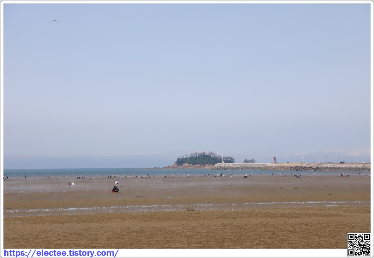 학암포해변에선 안개로 바다를 볼 수 없었으나 이곳은 그새 바다가 열렸다.