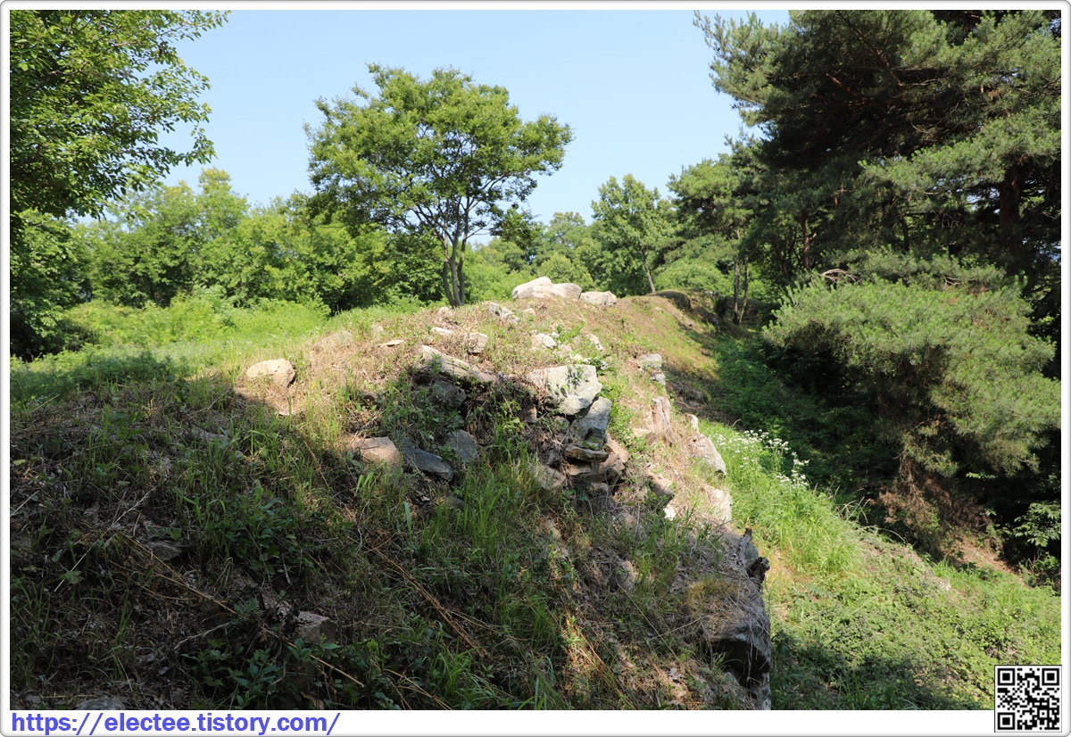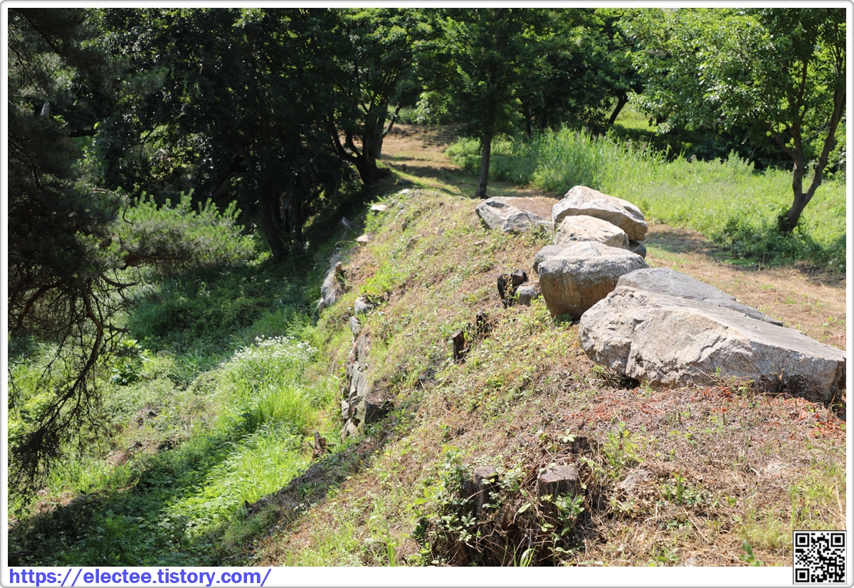 내면에는 경사를 이루며 흙을 두텁게 덮은 내탁부를 이루고 있지만,