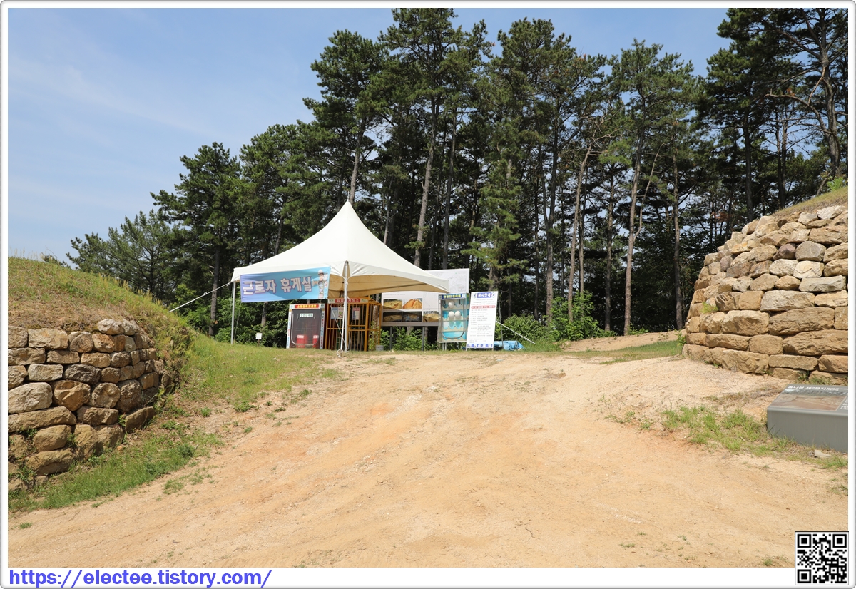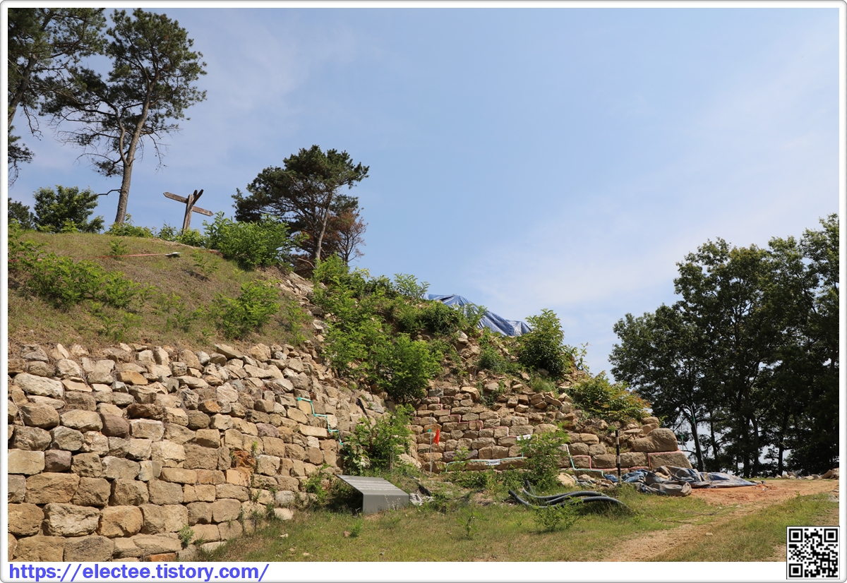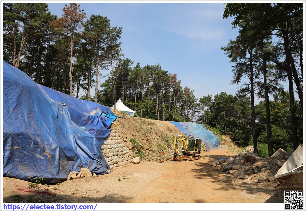 왼쪽에 두른 천막 우측 성벽 돌에 청테이프를 붙인 걸 볼 수 있다.