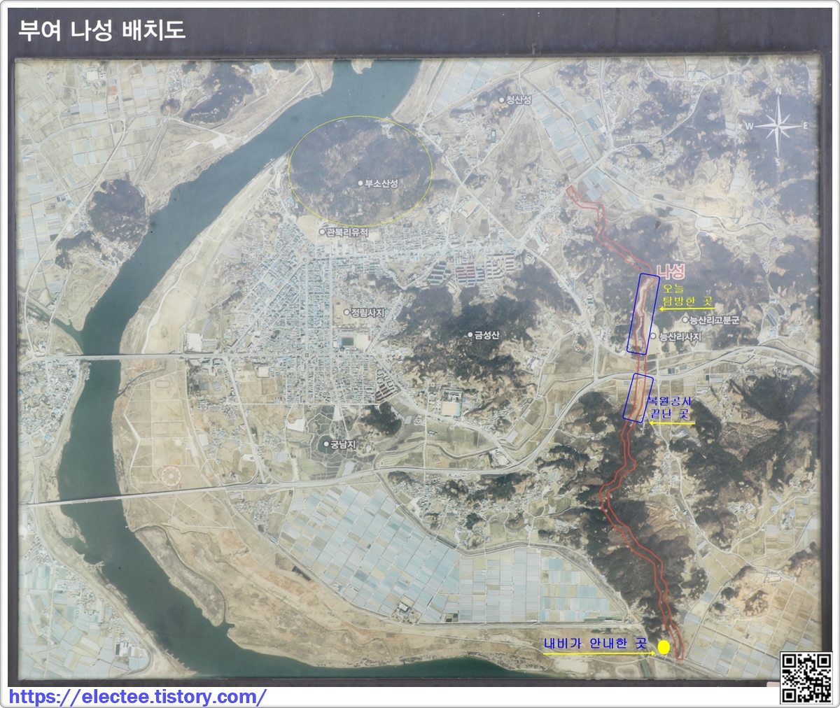 안내문에서도 볼 수 있듯 부소산성 동쪽산을 연결하여 6km를 외곽으로 길게 나성으로 둘렀다.