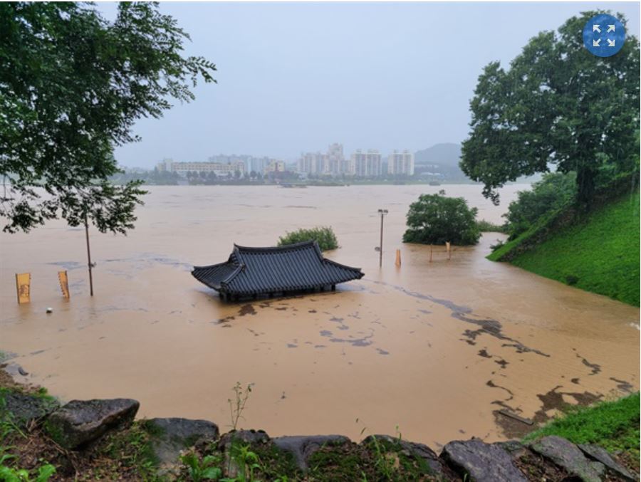2023.7.15. 전국에 내린 폭우로 공주 공산성 아래로 흐르는 금강이 범람하며 만하루가 강물에 잠겼다.
