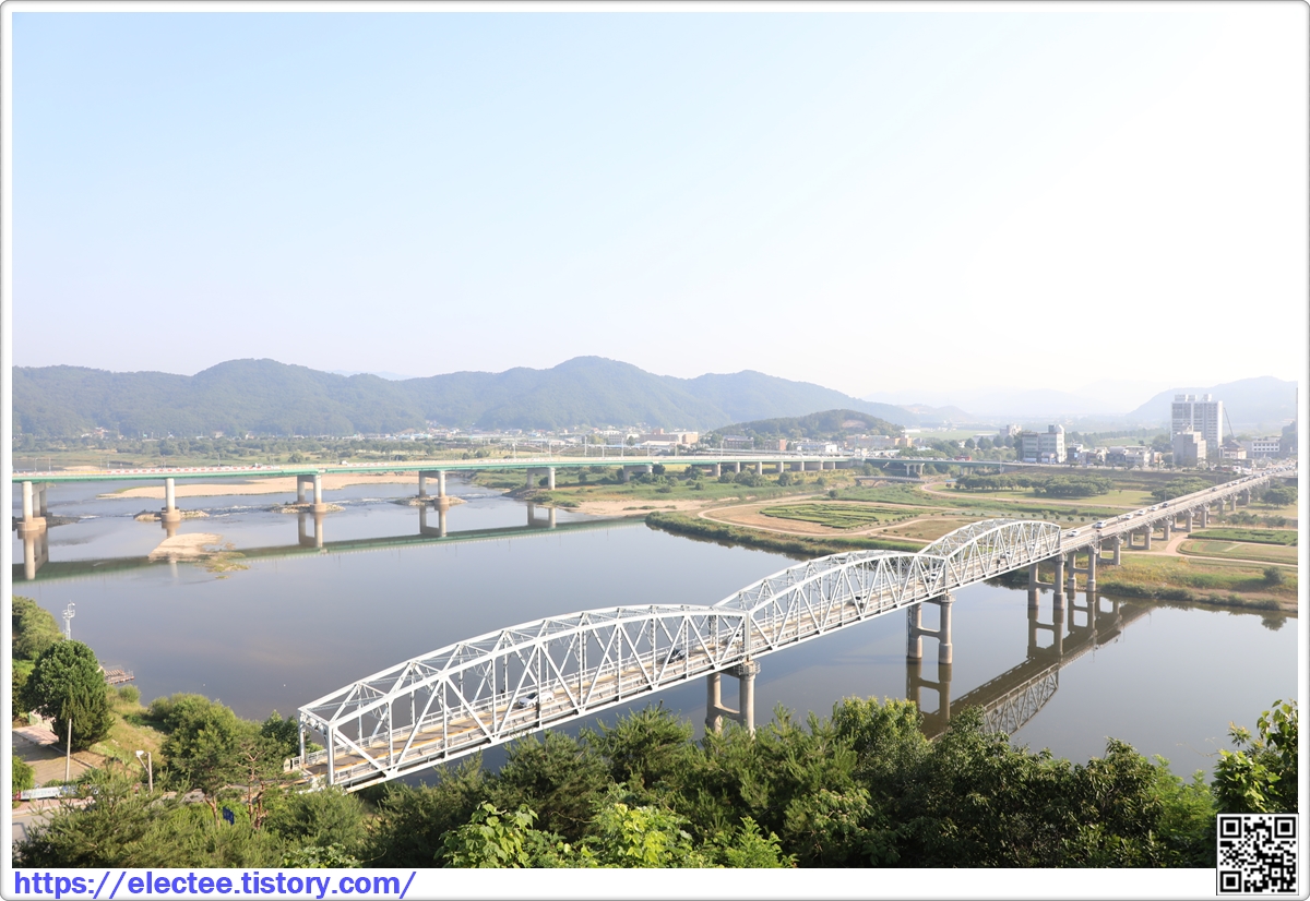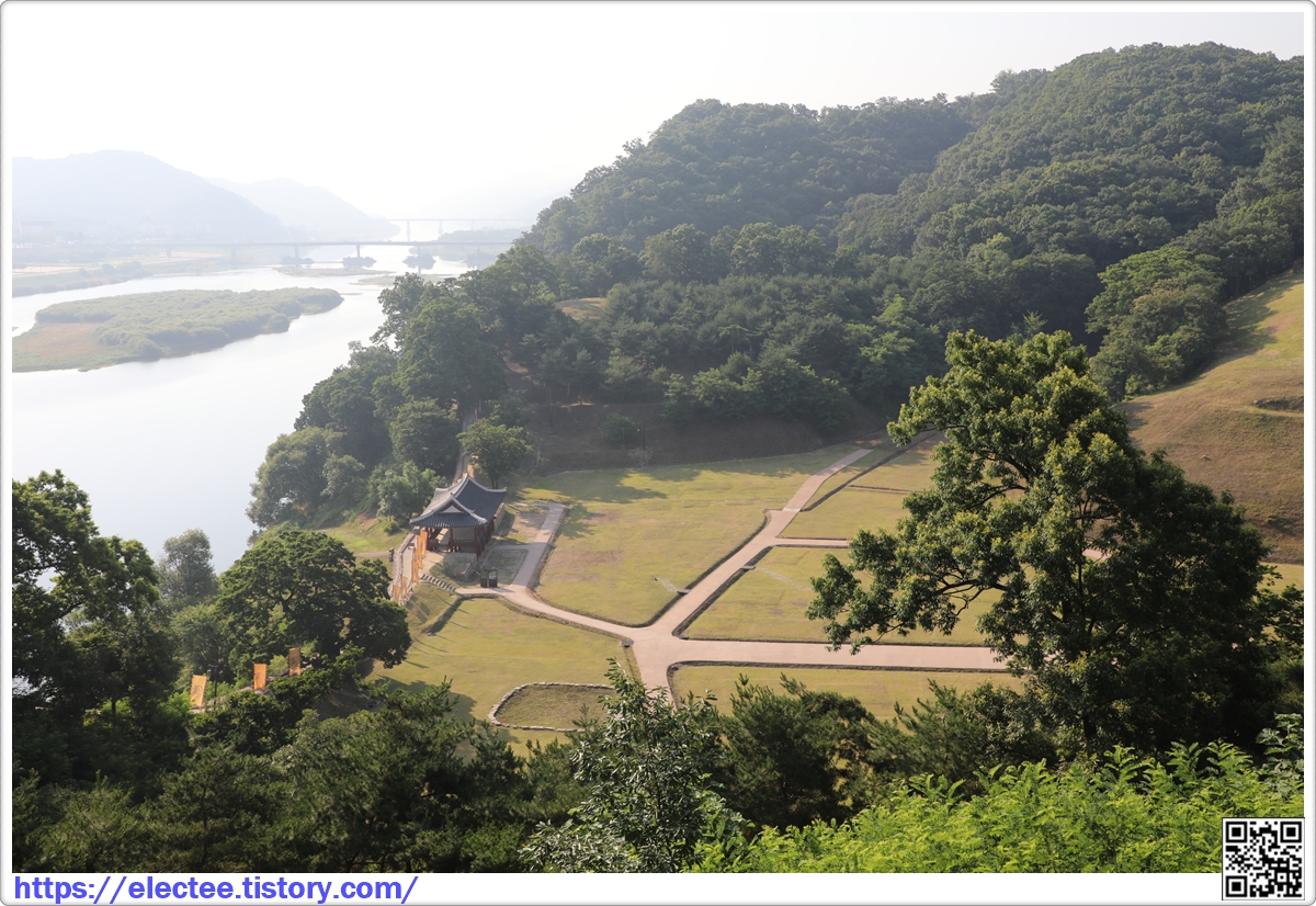 공산정 안에 있는 백제 왕궁 관련 유적을 비롯하여 유유히 흐르는 금강과 금강철교 등
