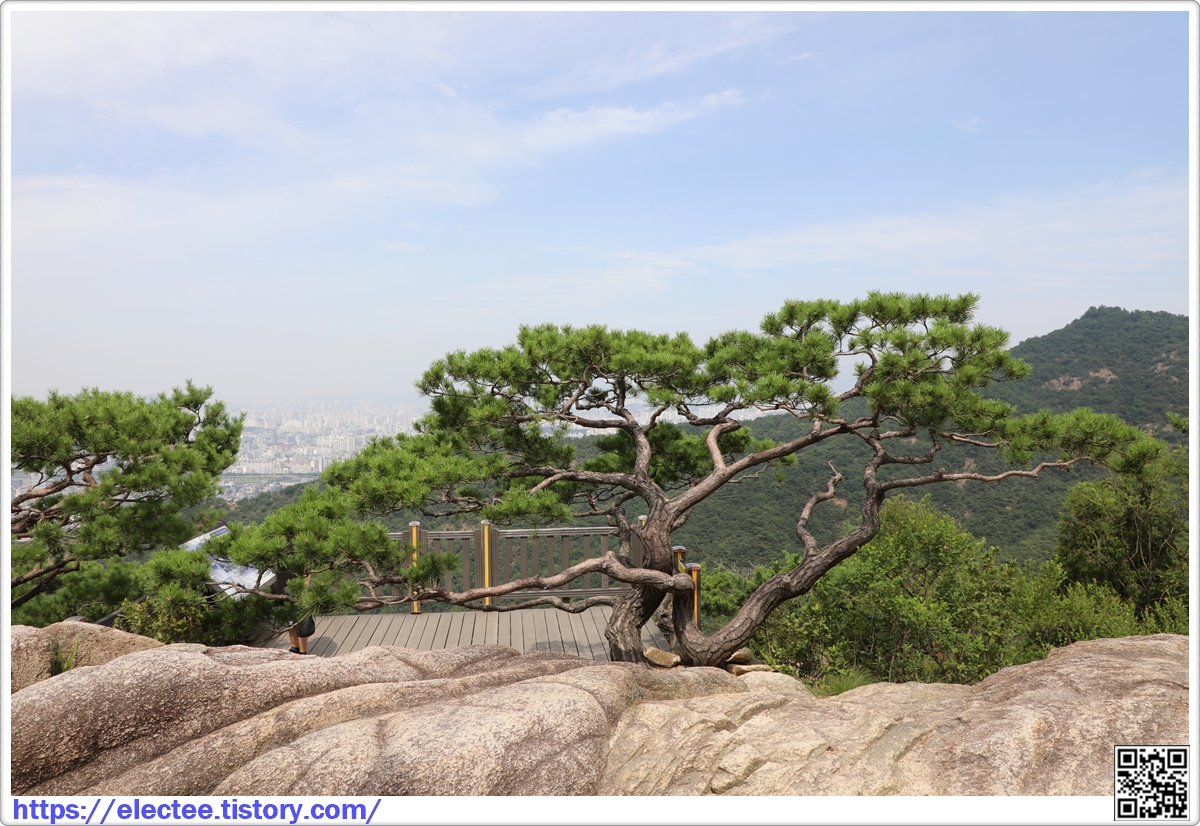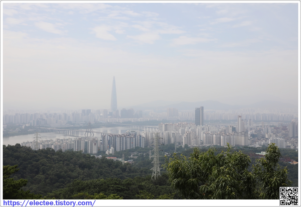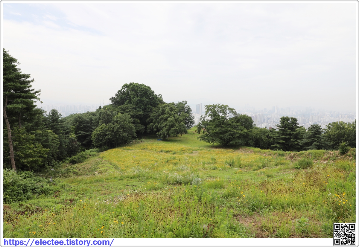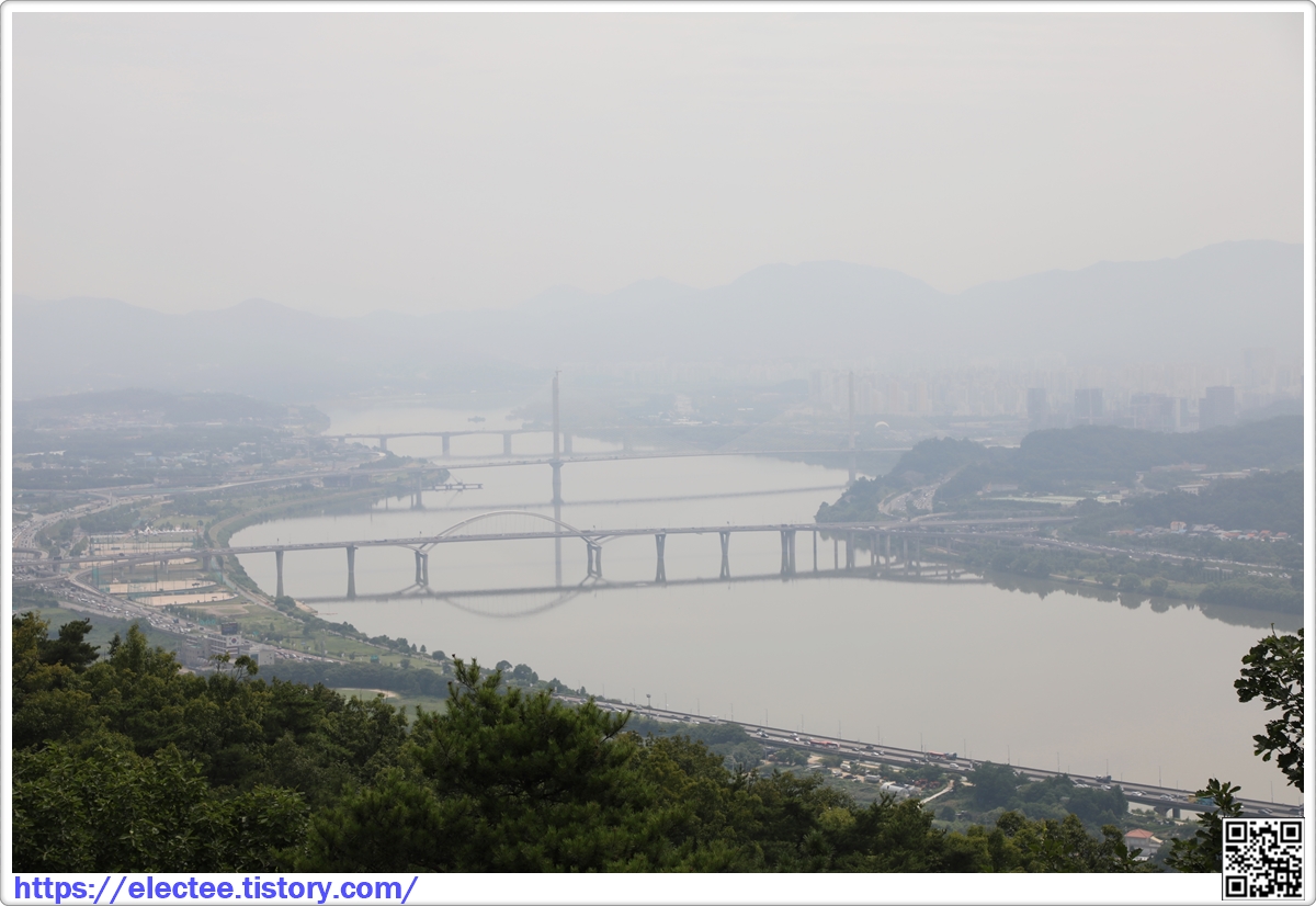 40분 정도의 등산로를 오르면 한강과 서울 시내가 한눈에 보이는 전망이 일품이다.